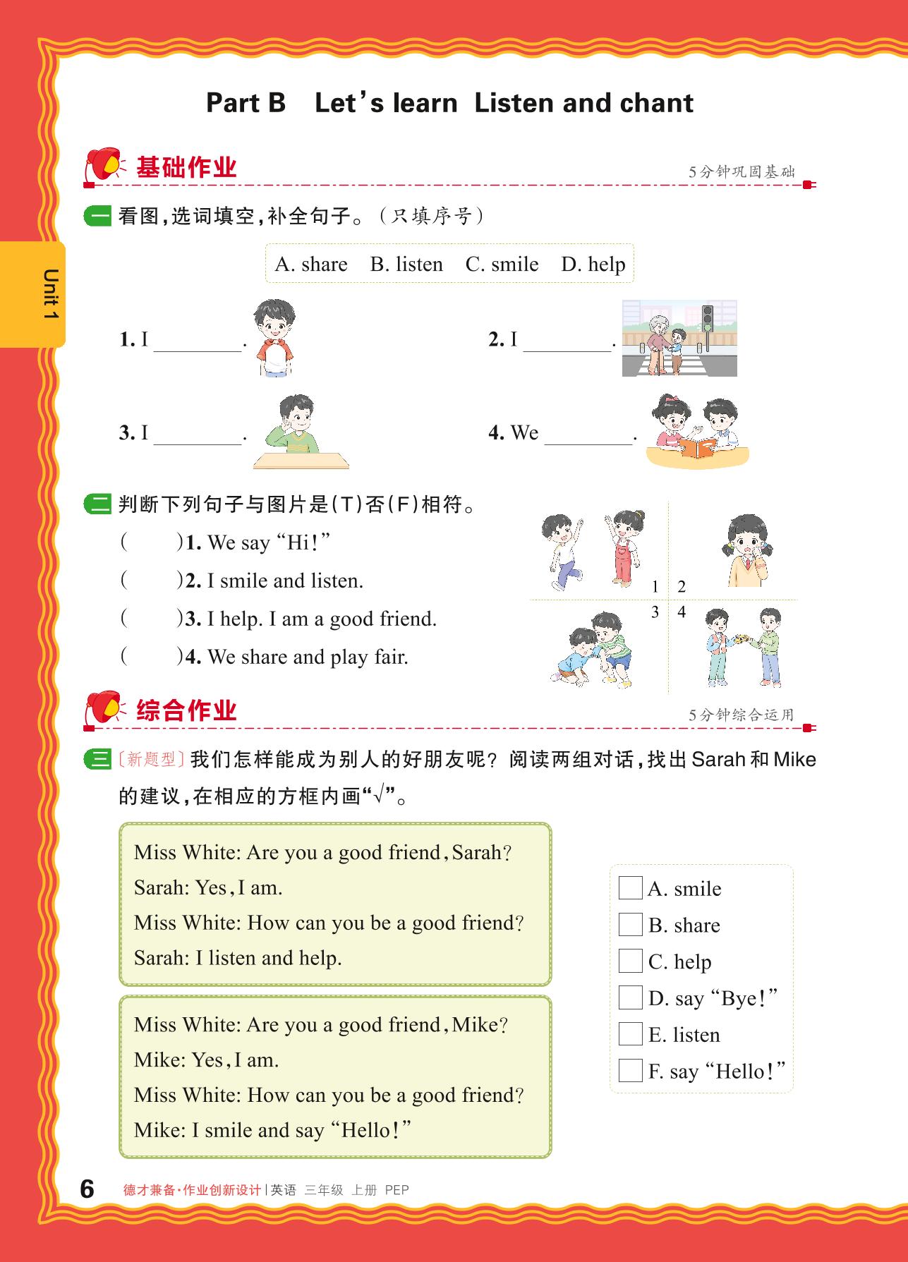 2024秋上册三年级英语人教PEP版(三起始) Unit 1—Part B Let's learn Listen and chant