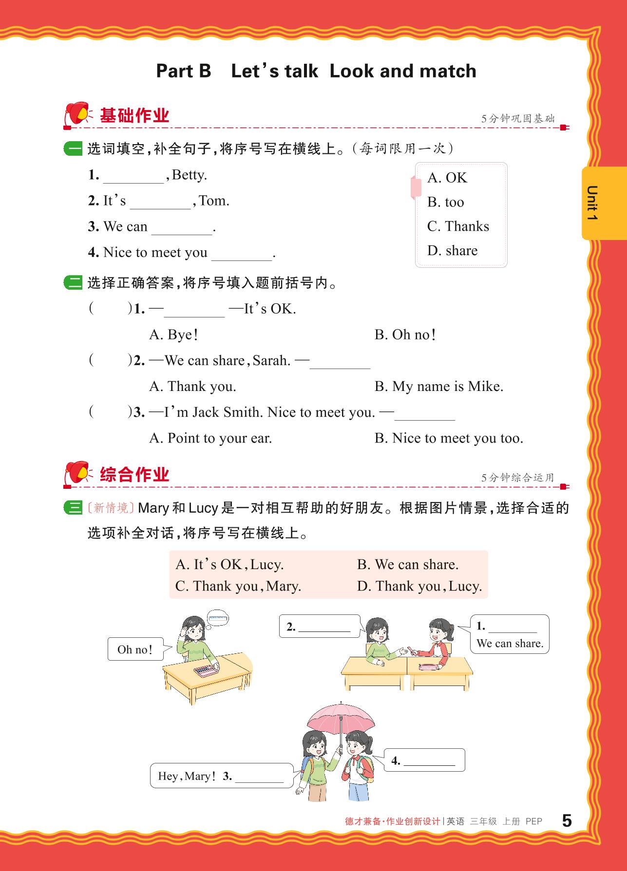 2024秋上册三年级英语人教PEP版(三起始) Unit 1—Part B Let's talk Look and match