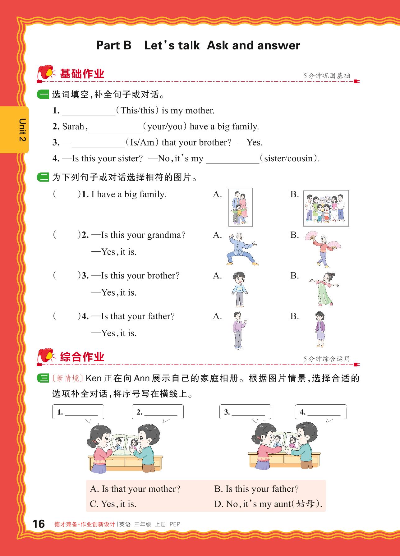 三年级英语人教PEP版(三起始)(2024)上册课时作业