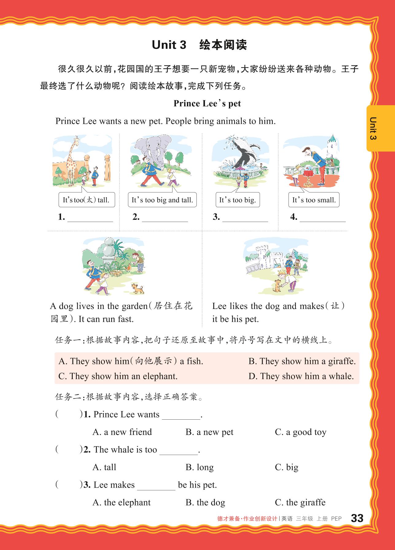 2024秋上册三年级英语人教PEP版(三起始) Unit 3 绘本阅读