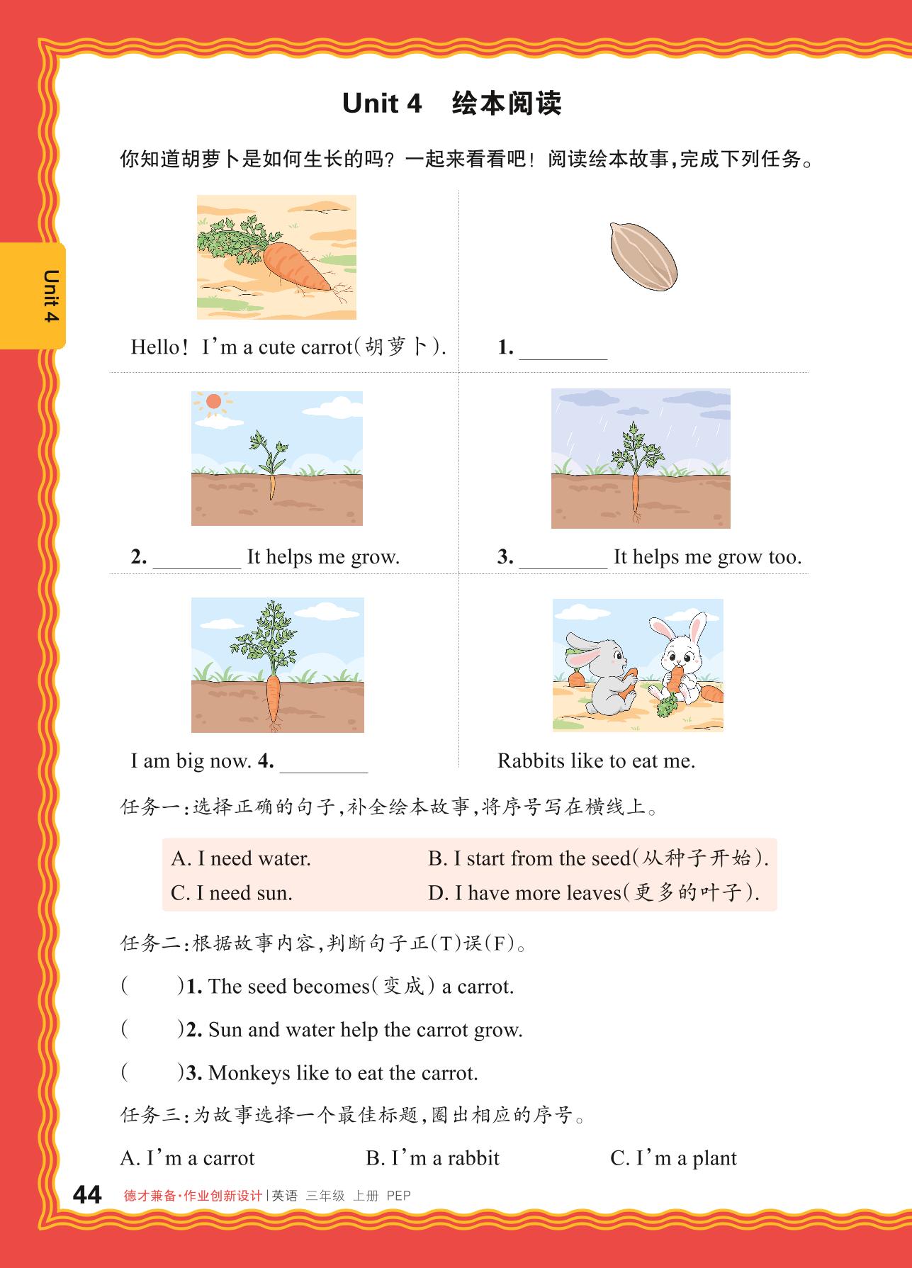 2024秋上册三年级英语人教PEP版(三起始) Unit 4 绘本阅读