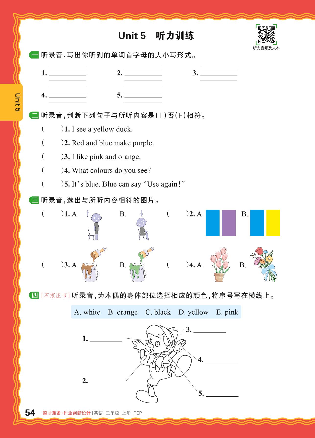 2024秋上册三年级英语人教PEP版(三起始) Unit 5 听力训练