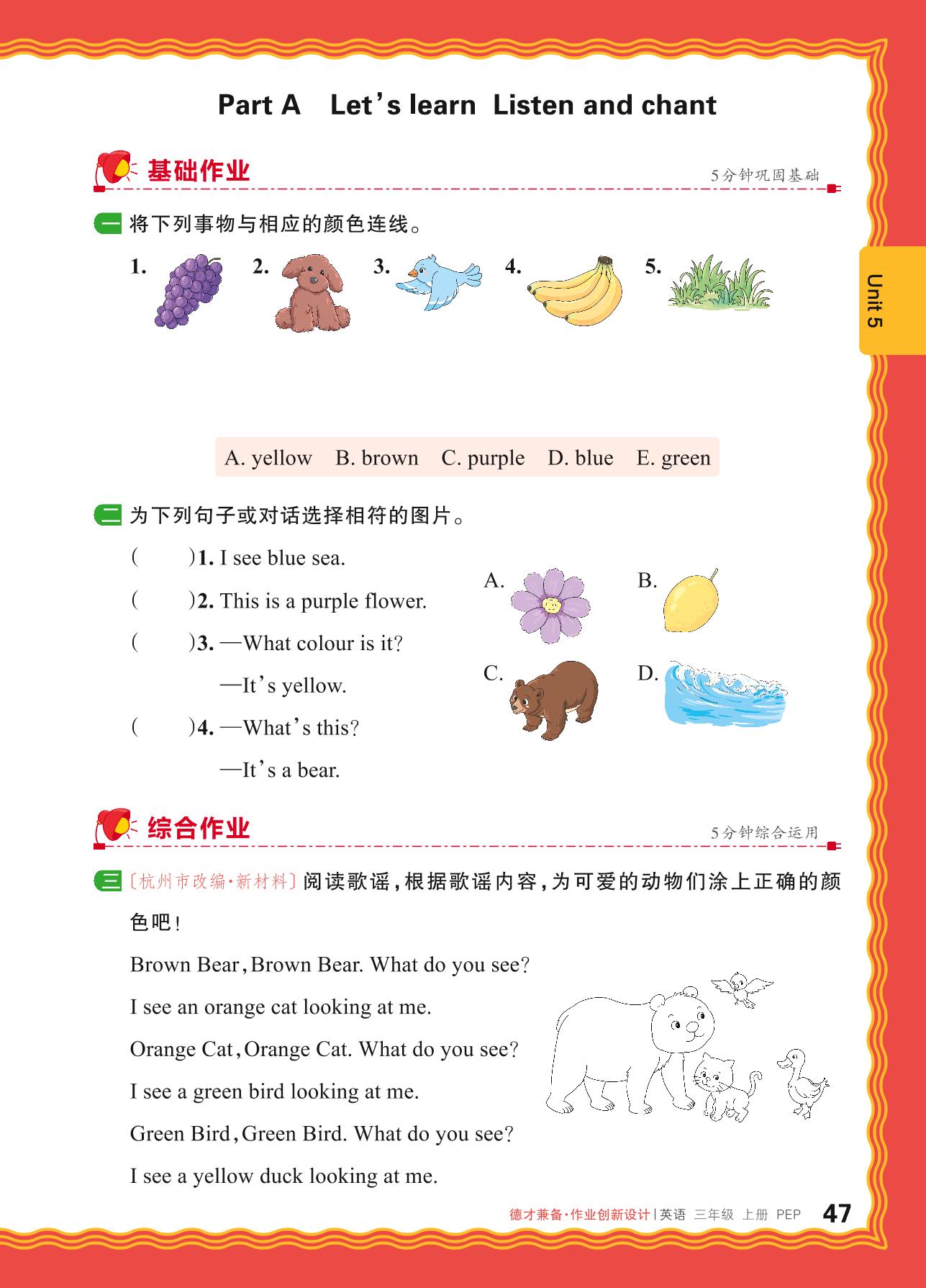 2024秋上册三年级英语人教PEP版(三起始) Unit 5—Part A Let's learn Listen and chant