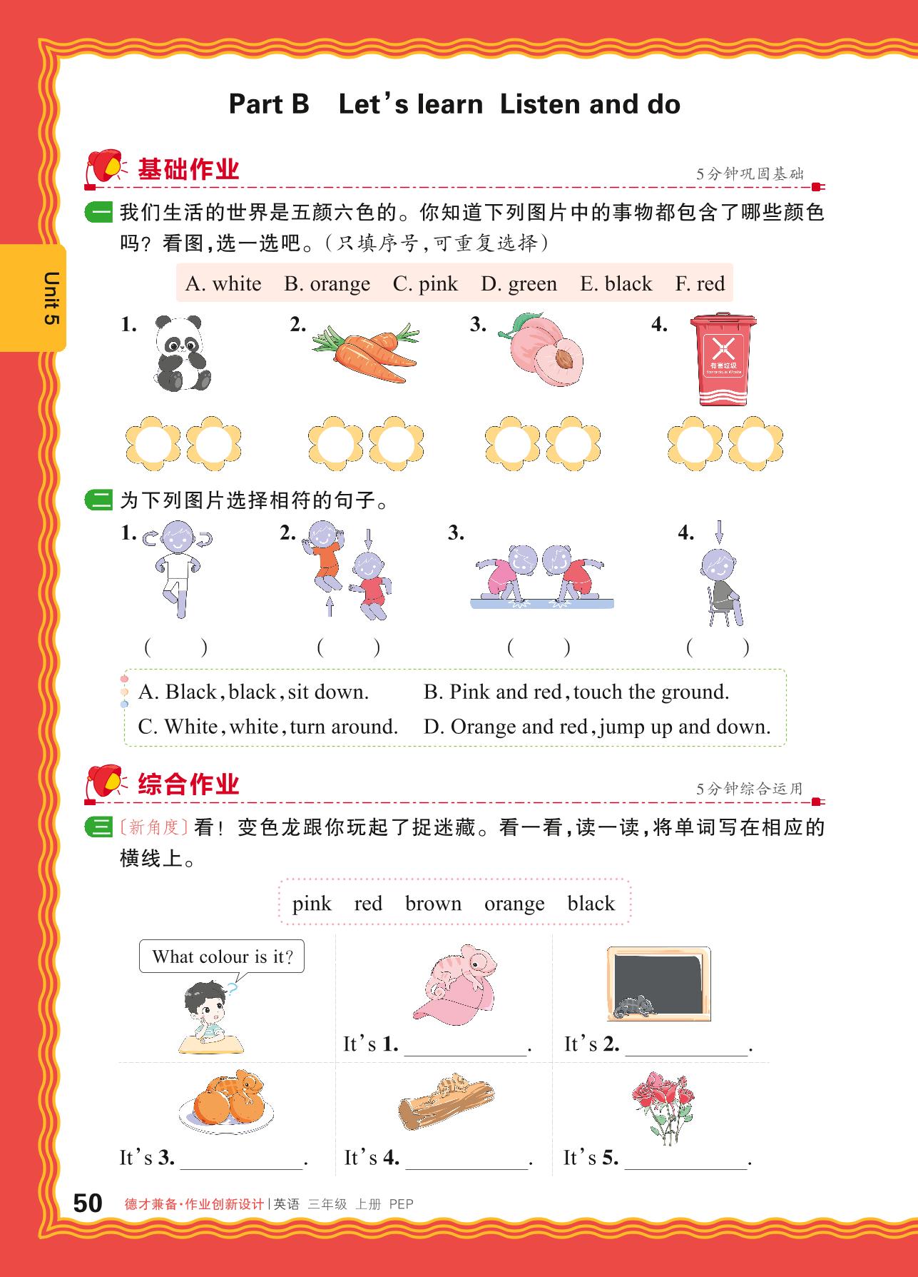 2024秋上册三年级英语人教PEP版(三起始) Unit 5—Part B Let's learn Listen and do