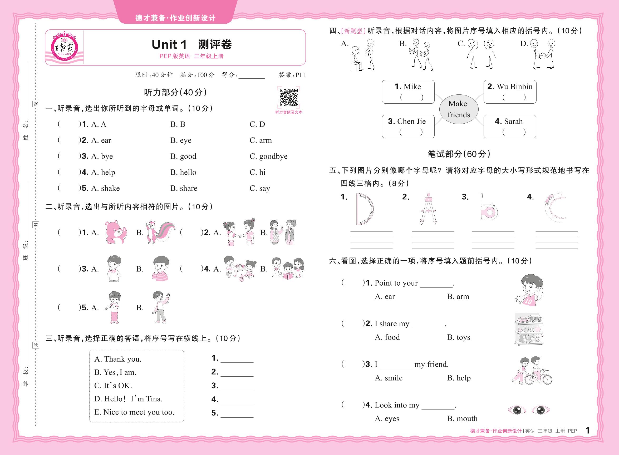 三年级英语人教PEP版(三起始)(2024)上册单元卷