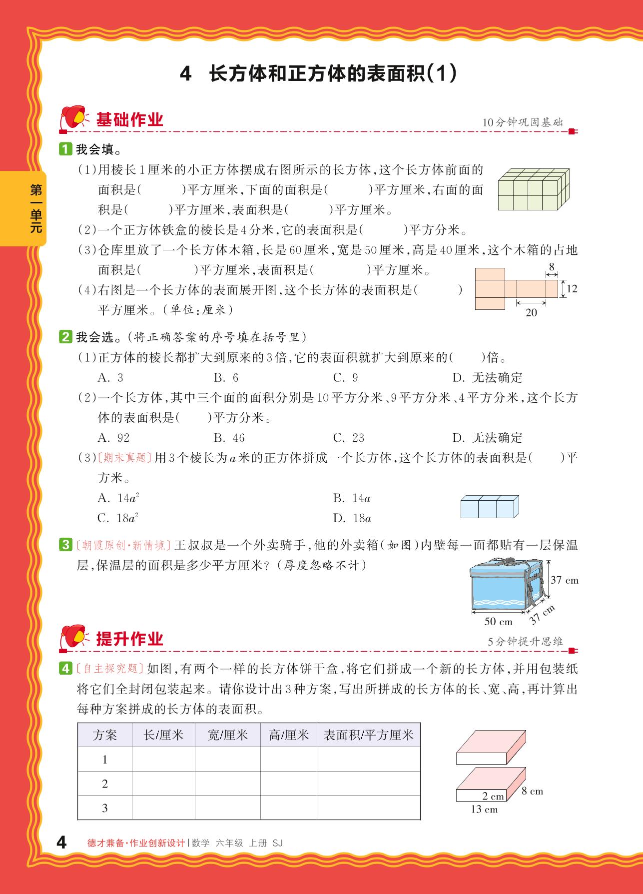 2024秋上册六年级数学苏教版 第一单元 长方体和正方体——4. 长方体和正方体的表面积(1)