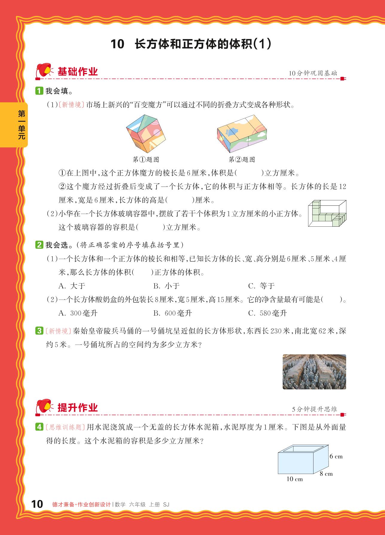 2024秋上册六年级数学苏教版 第一单元 长方体和正方体——10. 长方体和正方体的体积(1)