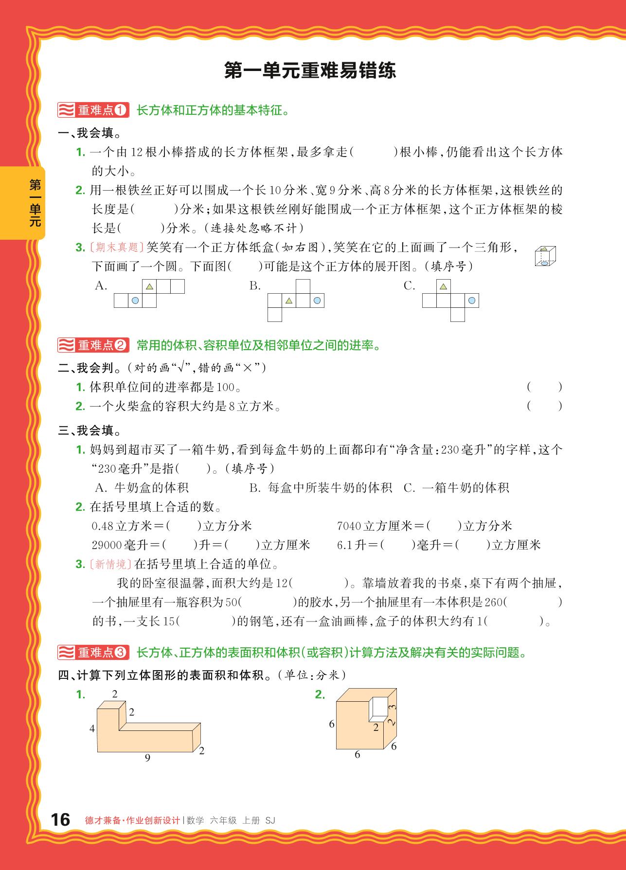 2024秋上册六年级数学苏教版 第一单元重难易错练