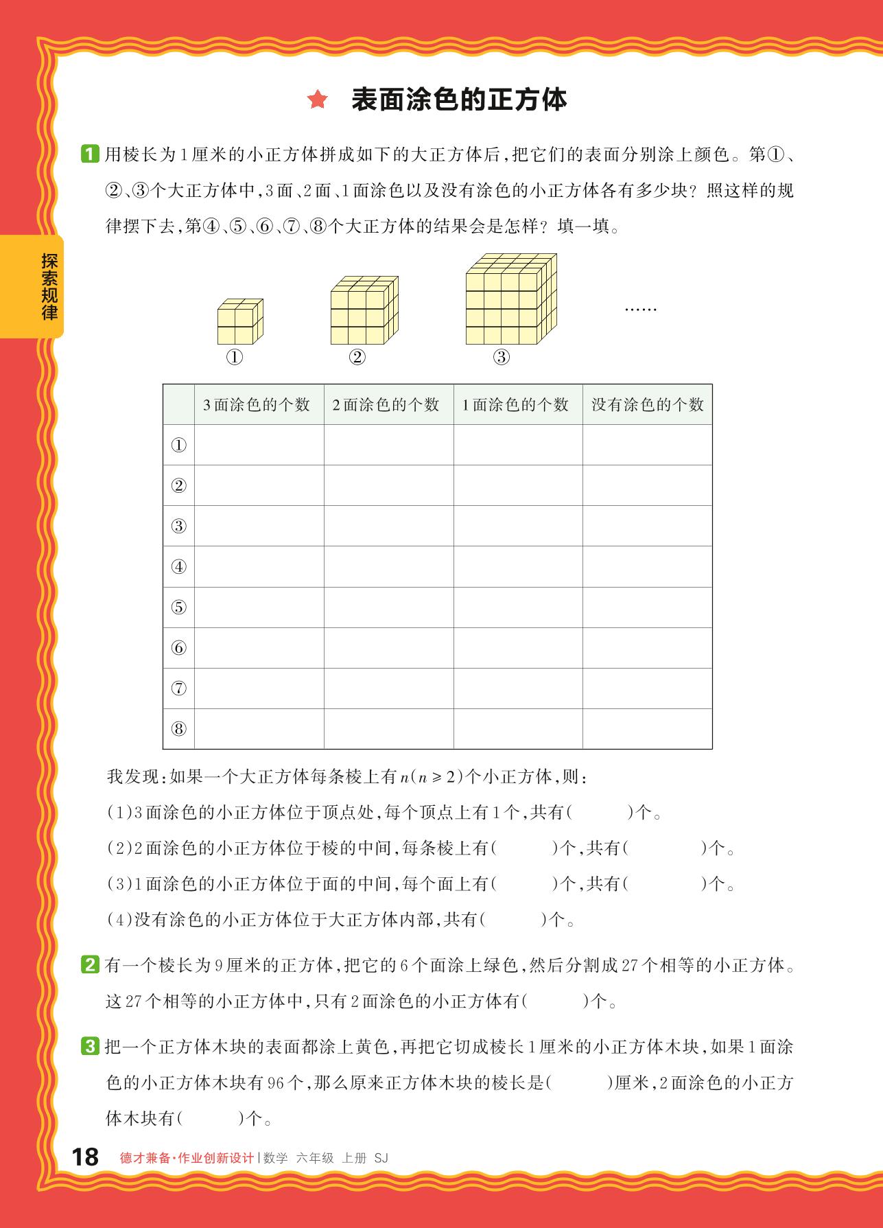 2024秋上册六年级数学苏教版 探索规律——表面涂色的正方体