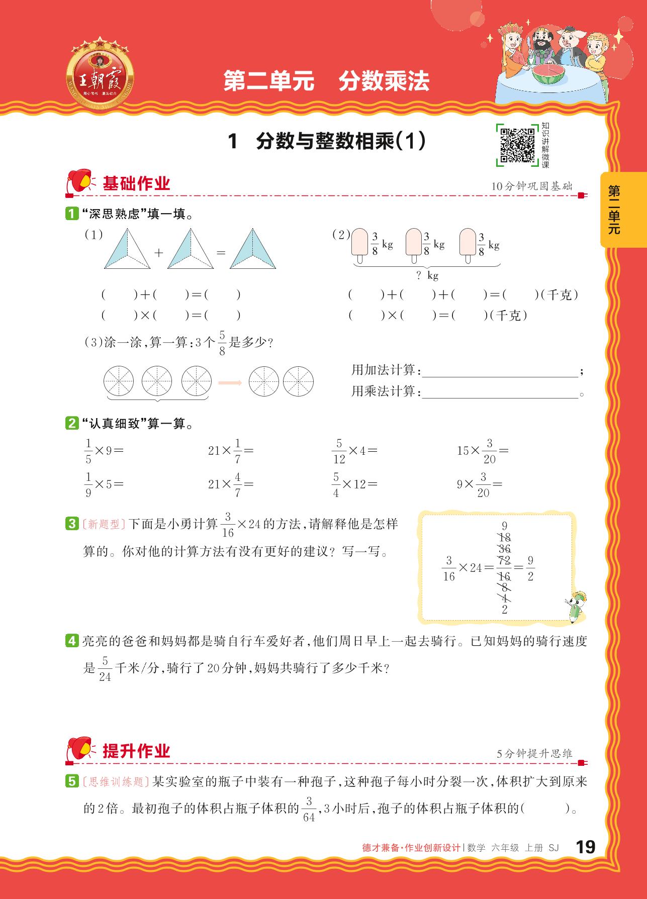 2024秋上册六年级数学苏教版 第二单元 分数乘法——1. 分数与整数相乘(1)
