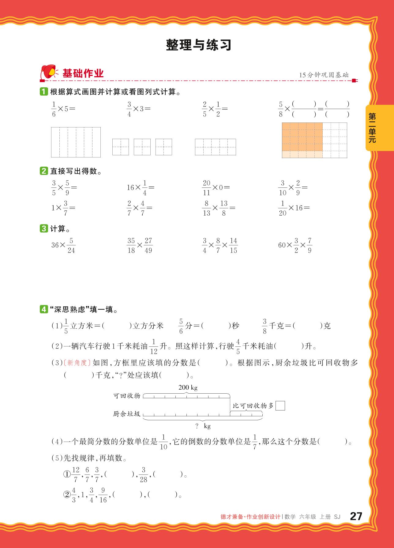 2024秋上册六年级数学苏教版 第二单元 分数乘法——整理与练习