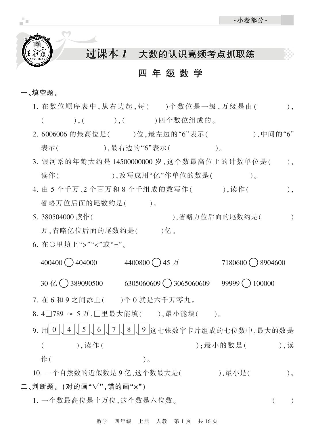 王朝霞期末过课本四年级上册数学(人教版)_R210804155805【0】