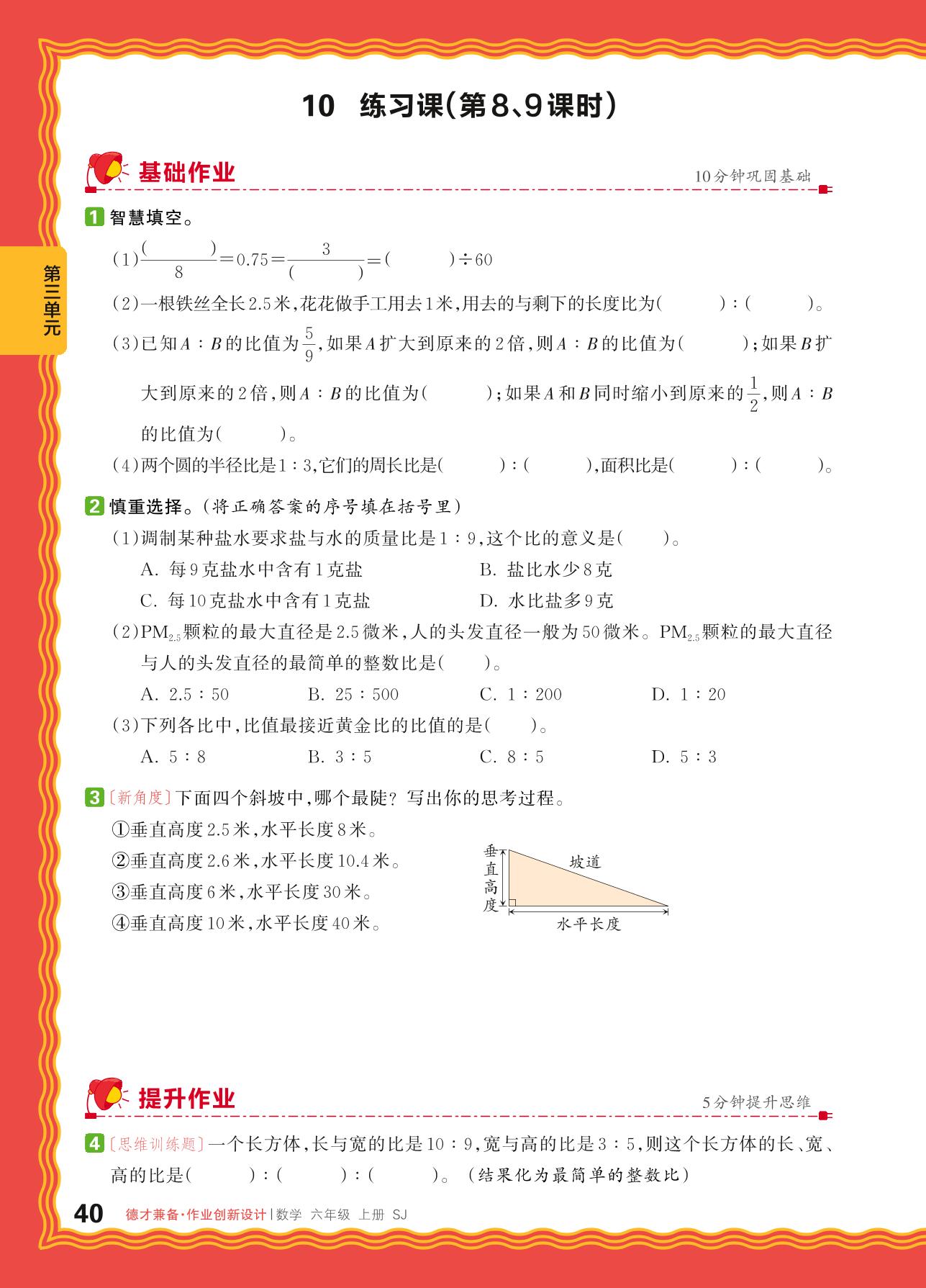 2024秋上册六年级数学苏教版 第三单元 分数除法——10. 比的意义、比的基本性质和化简比练习课