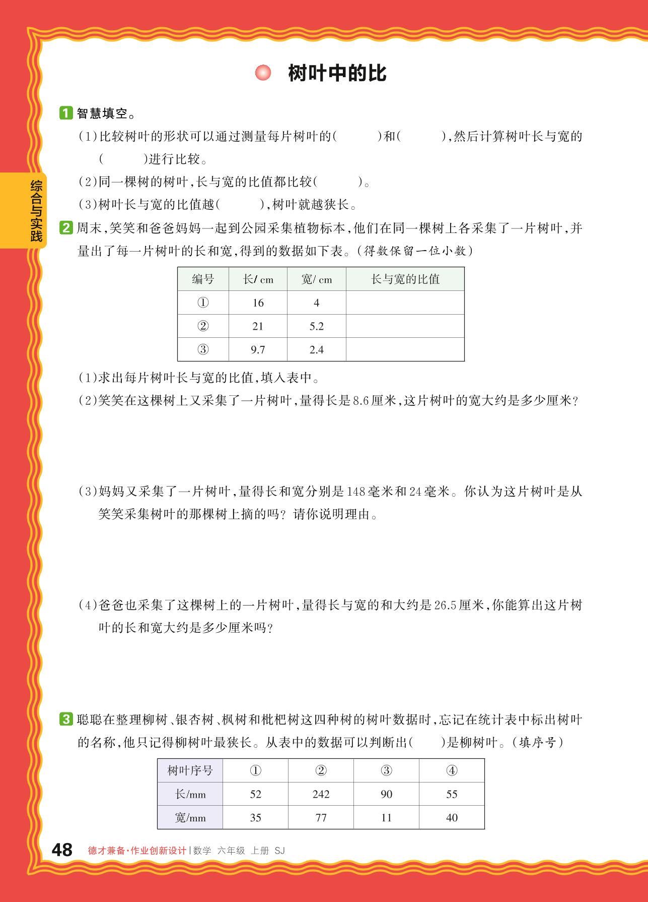 2024秋上册六年级数学苏教版 综合与实践——树叶中的比
