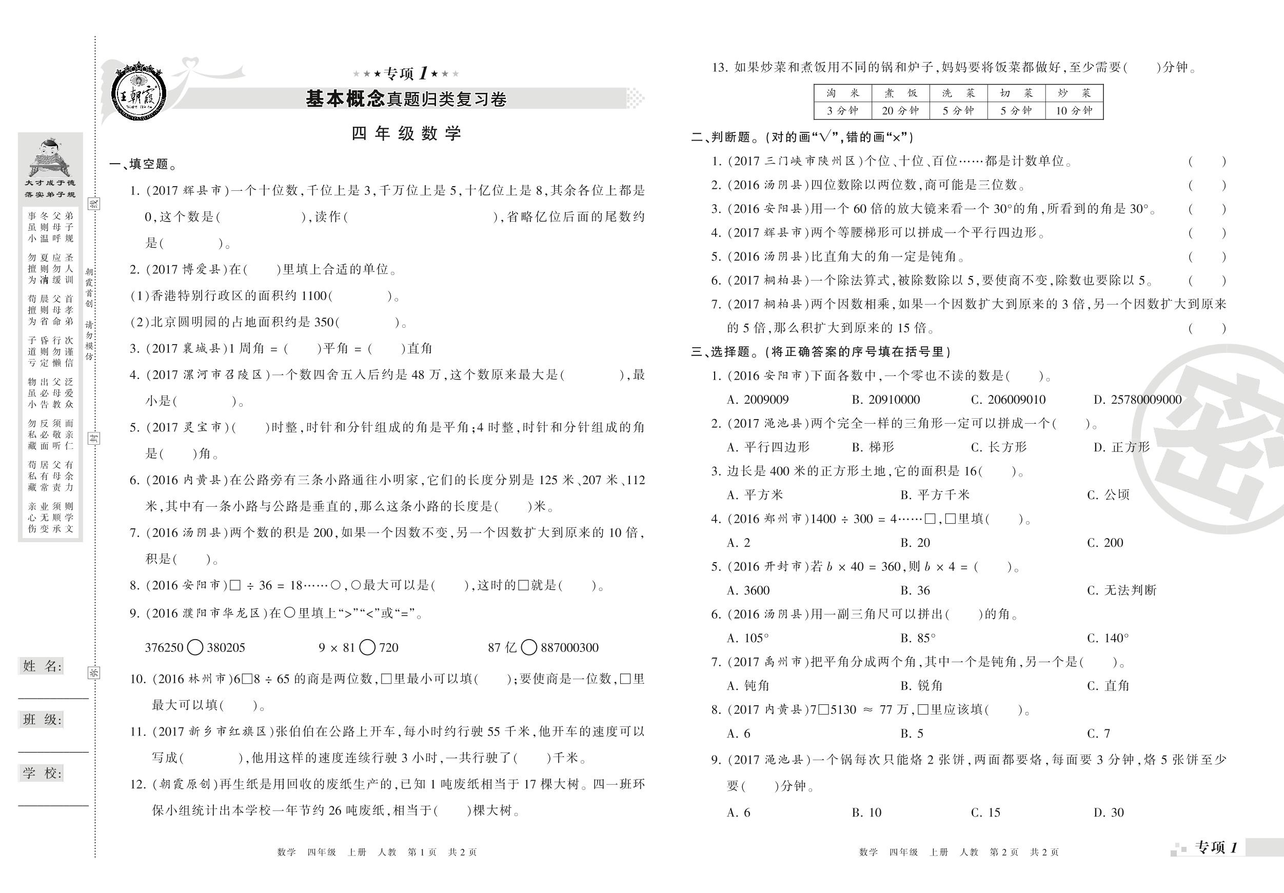 王朝霞期末专项卷——基本概念、计算(一)真题归类复习卷四年级上册数学(人教版)_R210804155811【0】