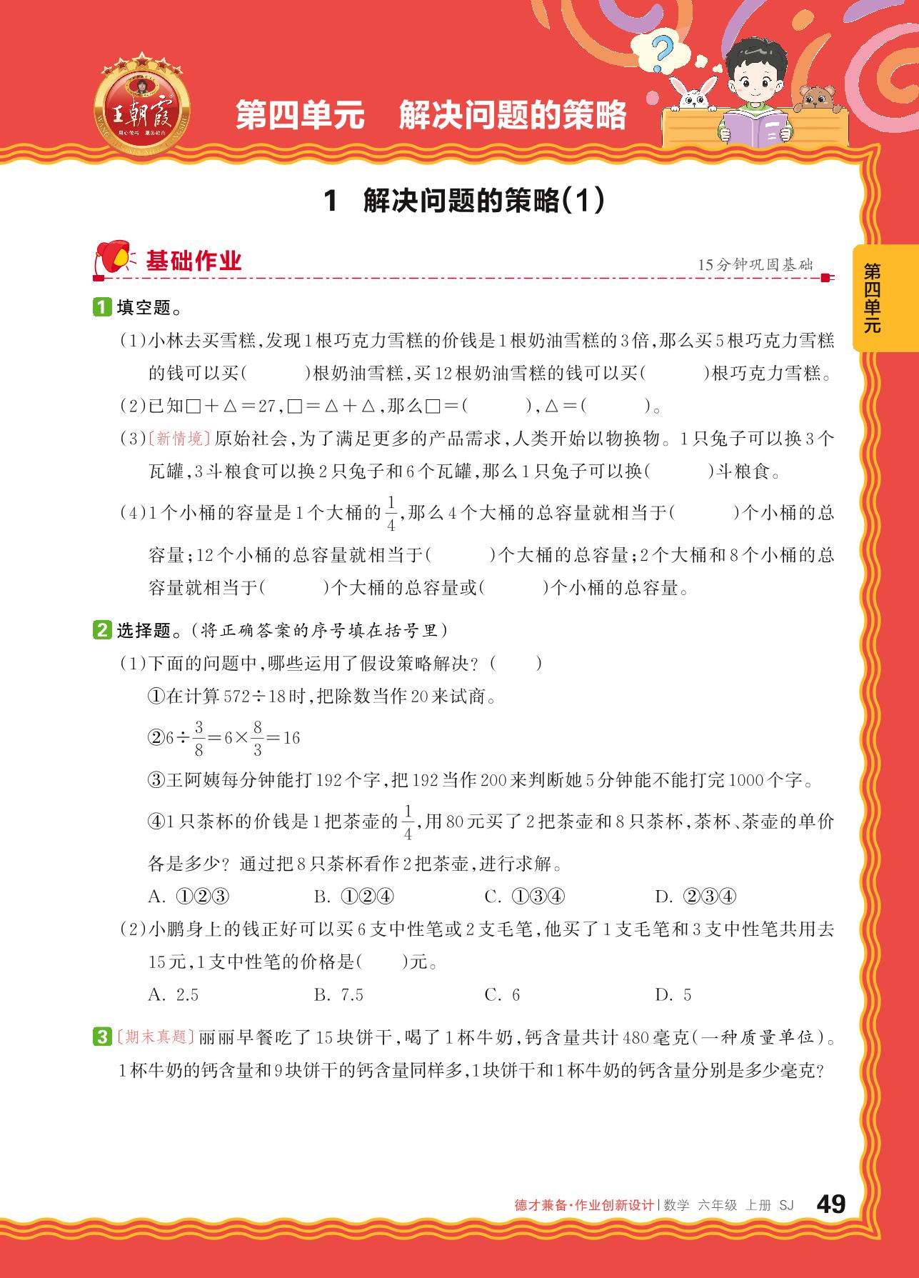 2024秋上册六年级数学苏教版 第四单元 解决问题的策略——1. 解决问题的策略(1)