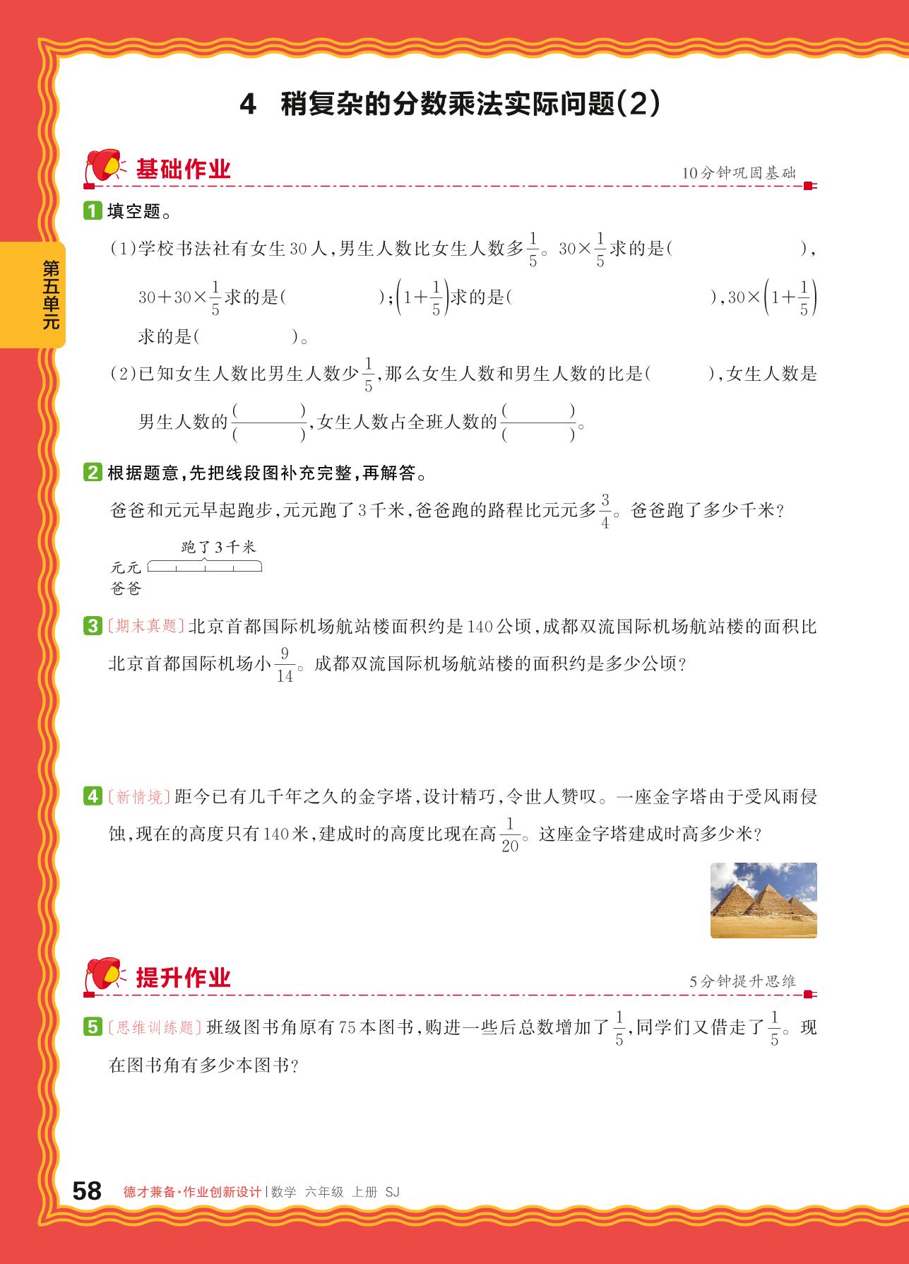2024秋上册六年级数学苏教版 第五单元 分数四则混合运算——4. 稍复杂的分数乘法实际问题(2)