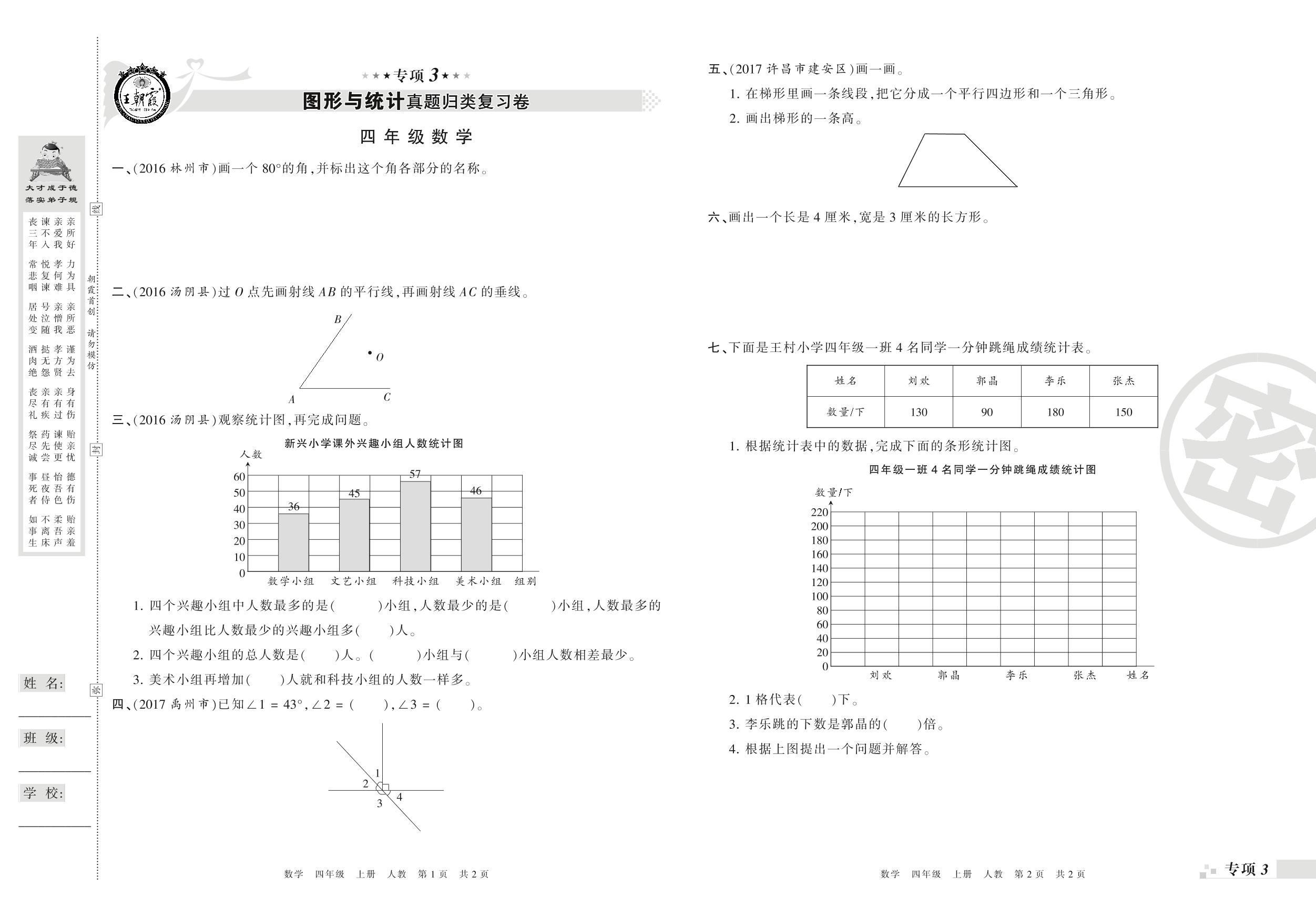 王朝霞期末专项卷——图形与统计、解决问题真题归类复习卷四年级上册数学(人教版)_R210804155813【0】
