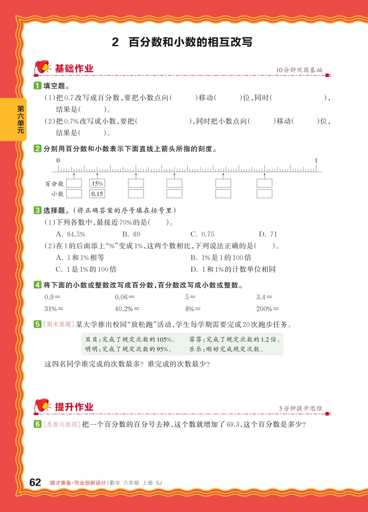 2024秋上册六年级数学苏教版 第六单元 百分数——2. 百分数和小数的相互改写