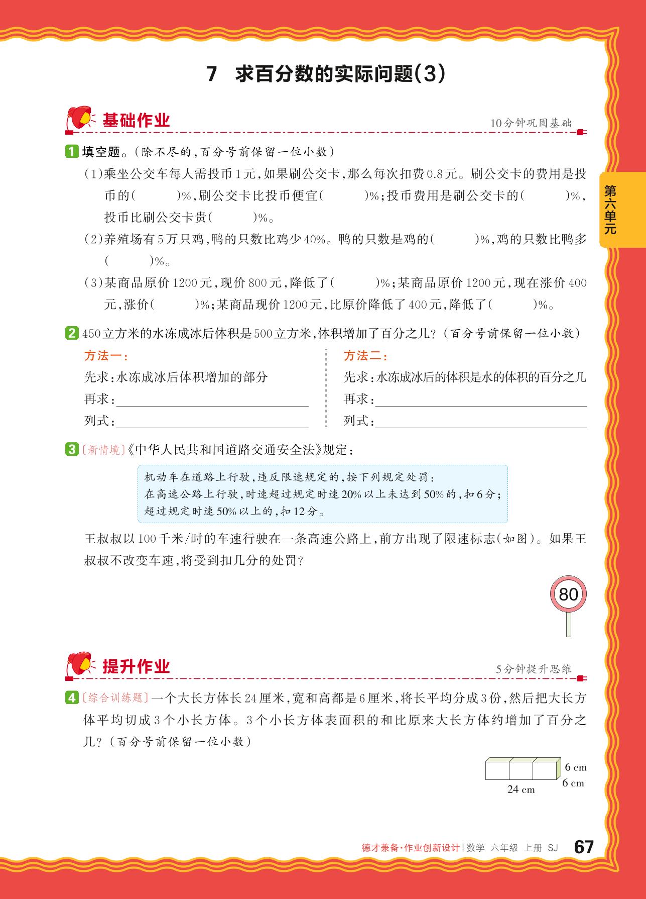 2024秋上册六年级数学苏教版 第六单元 百分数——7. 求百分数的实际问题(3)