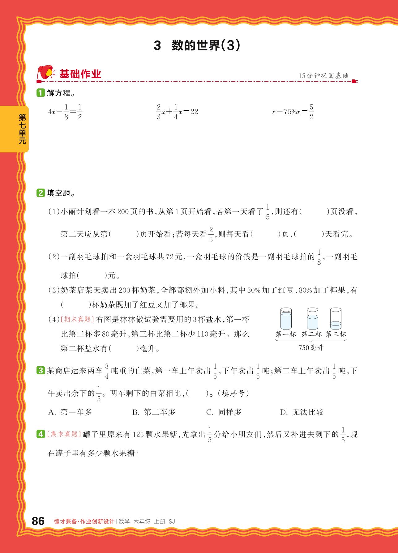 六年级数学苏教版上册课时作业