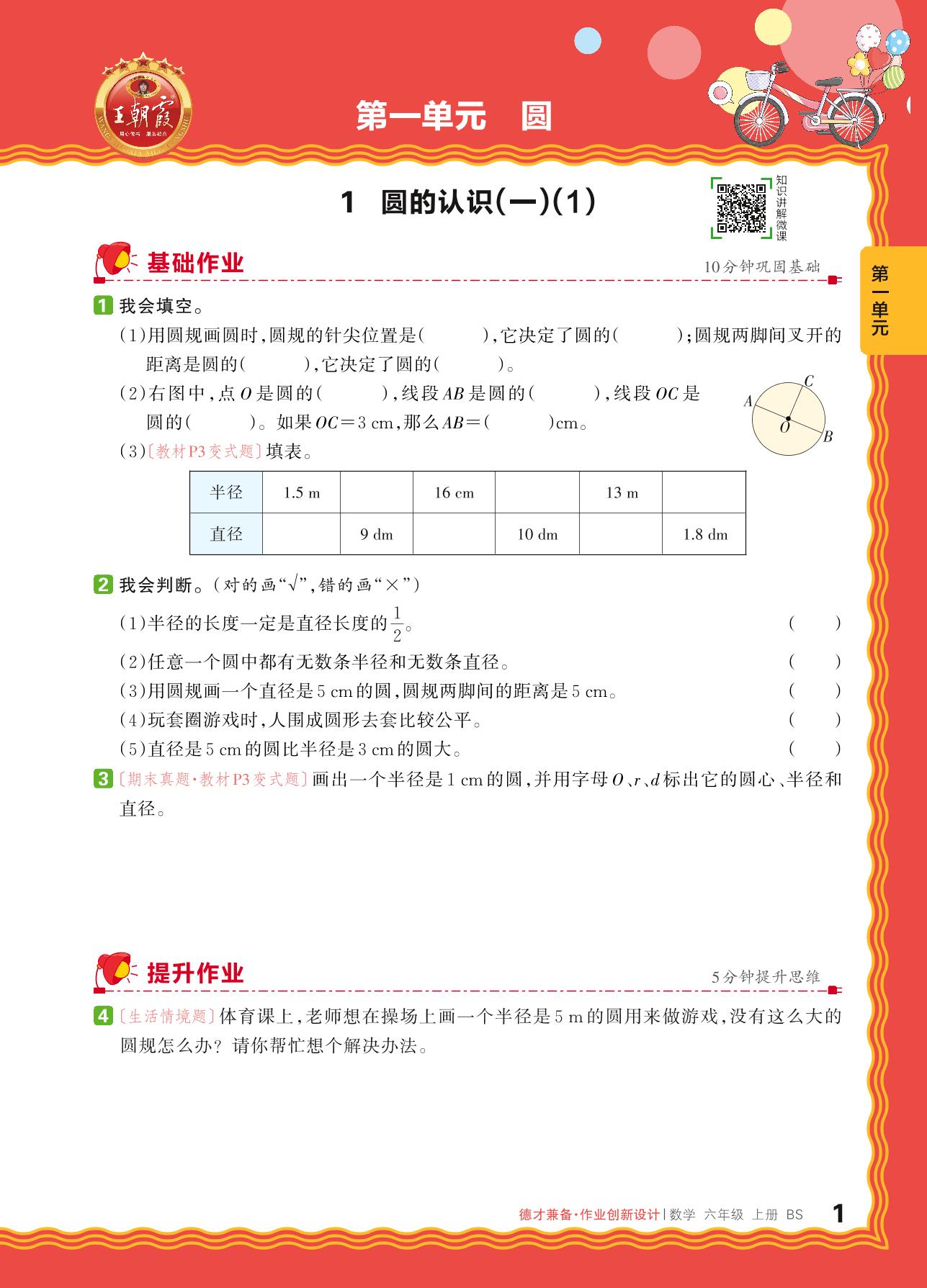 2024秋上册六年级数学北师版 第一单元 圆——1. 圆的认识(一)(1)_R240819154404301