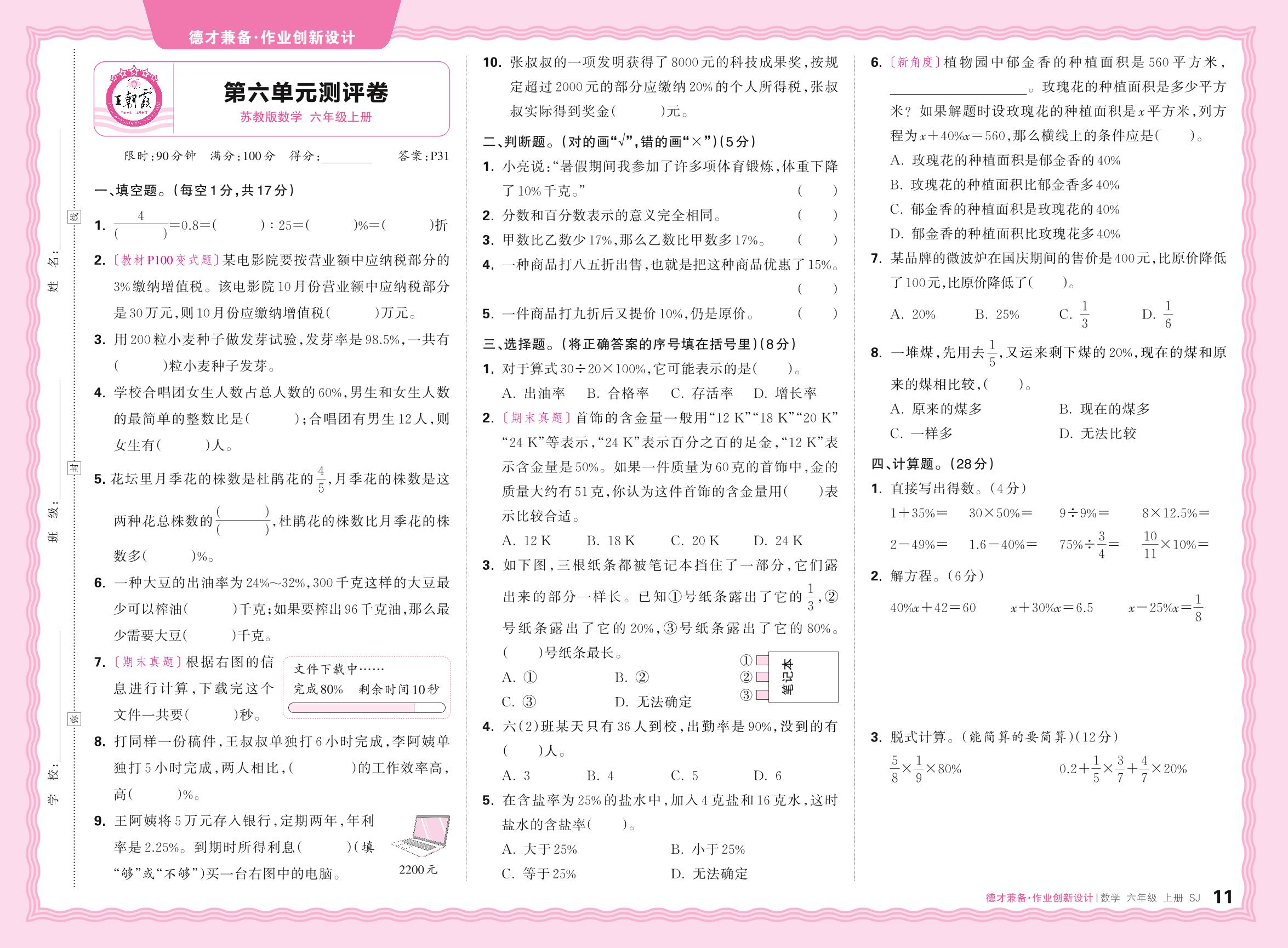 六年级数学苏教版上册单元卷