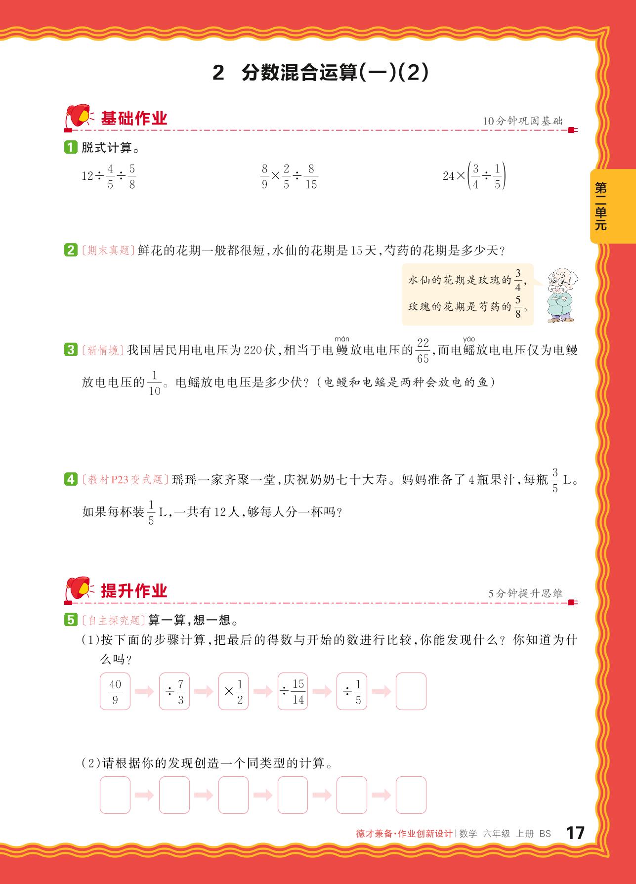 2024秋上册六年级数学北师版 第二单元 分数混合运算——2. 分数混合运算(一)(2)_R240819154412178