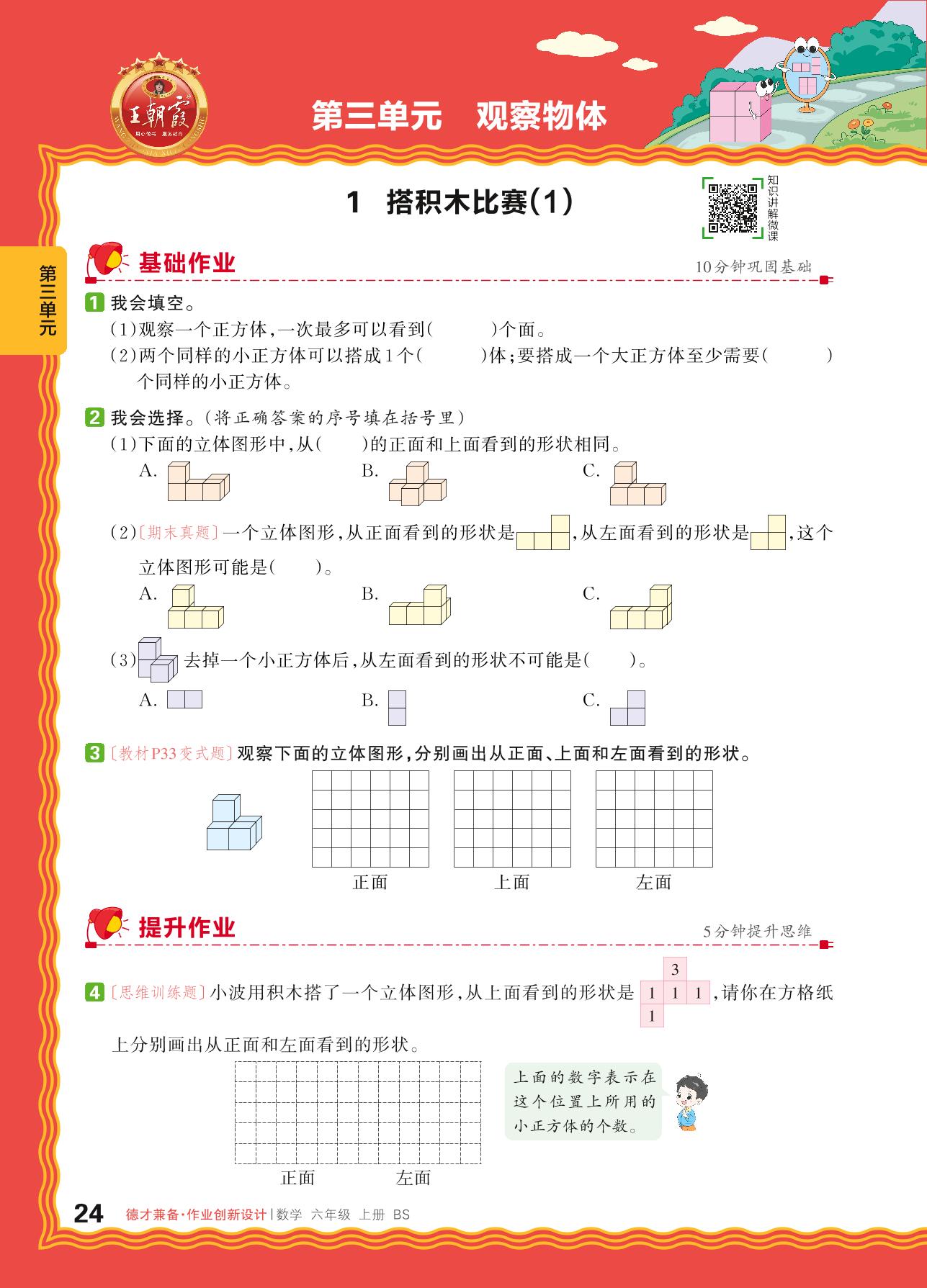 2024秋上册六年级数学北师版 第三单元 观察物体——1. 搭积木比赛(1)