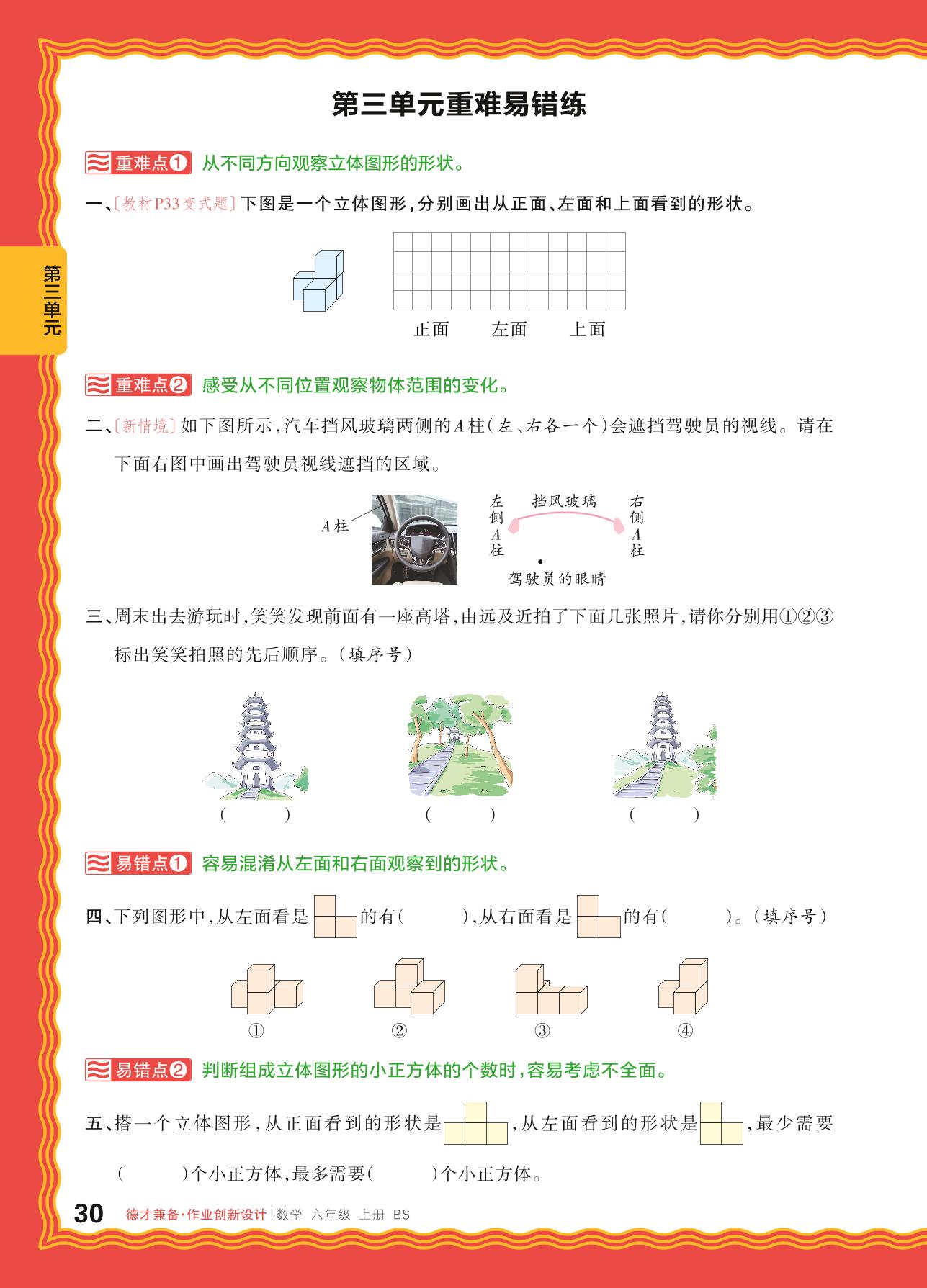 2024秋上册六年级数学北师版 第三单元重难易错练