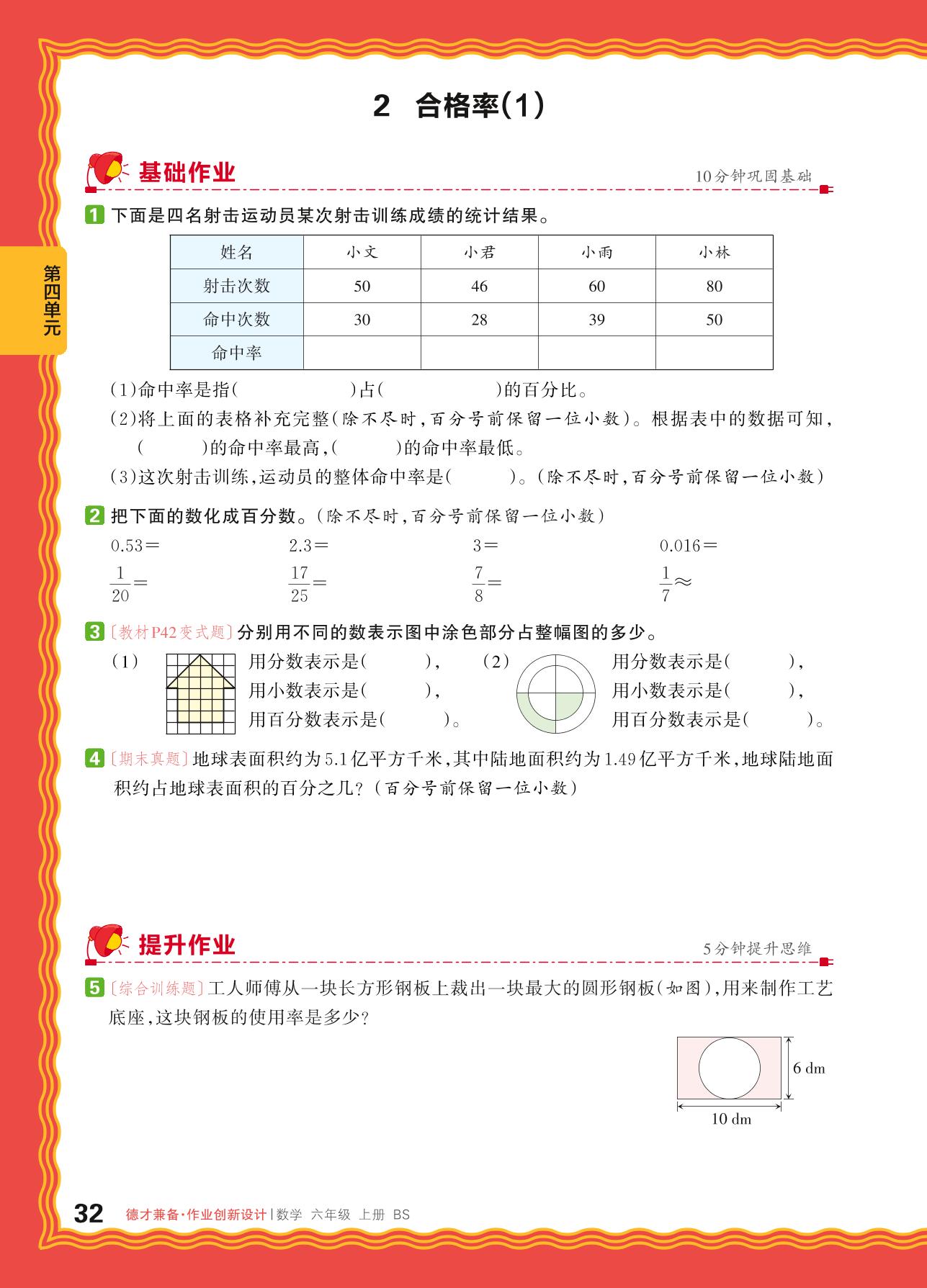 2024秋上册六年级数学北师版 第四单元 百分数——2. 合格率(1)_R240819154418453