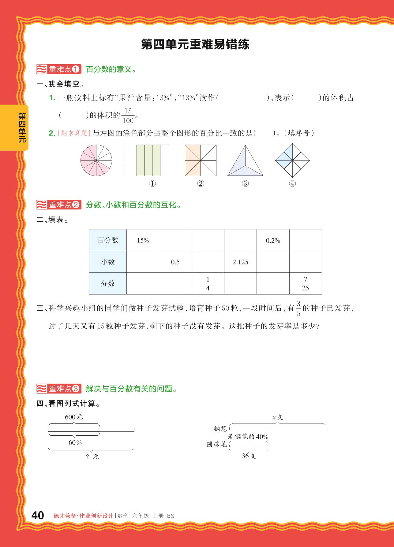2024秋上册六年级数学北师版 第四单元重难易错练