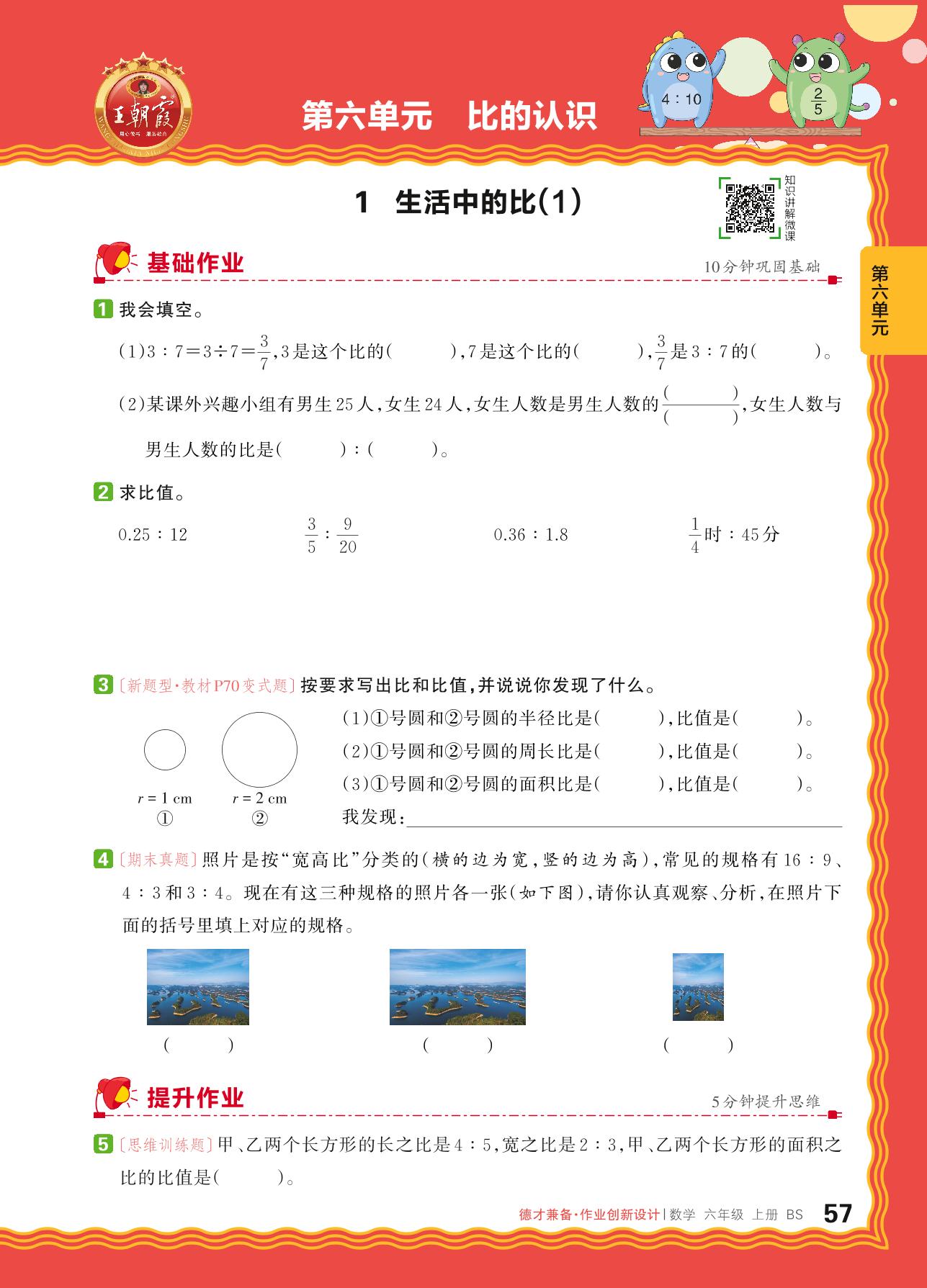 2024秋上册六年级数学北师版 第六单元 比的认识——1. 生活中的比(1)_R240819154425179