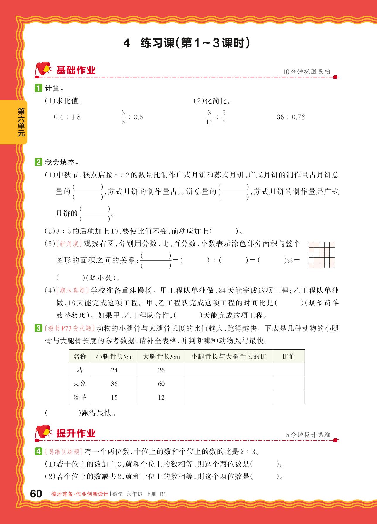 2024秋上册六年级数学北师版 第六单元 比的认识——4. 生活中的比、比的化简练习课