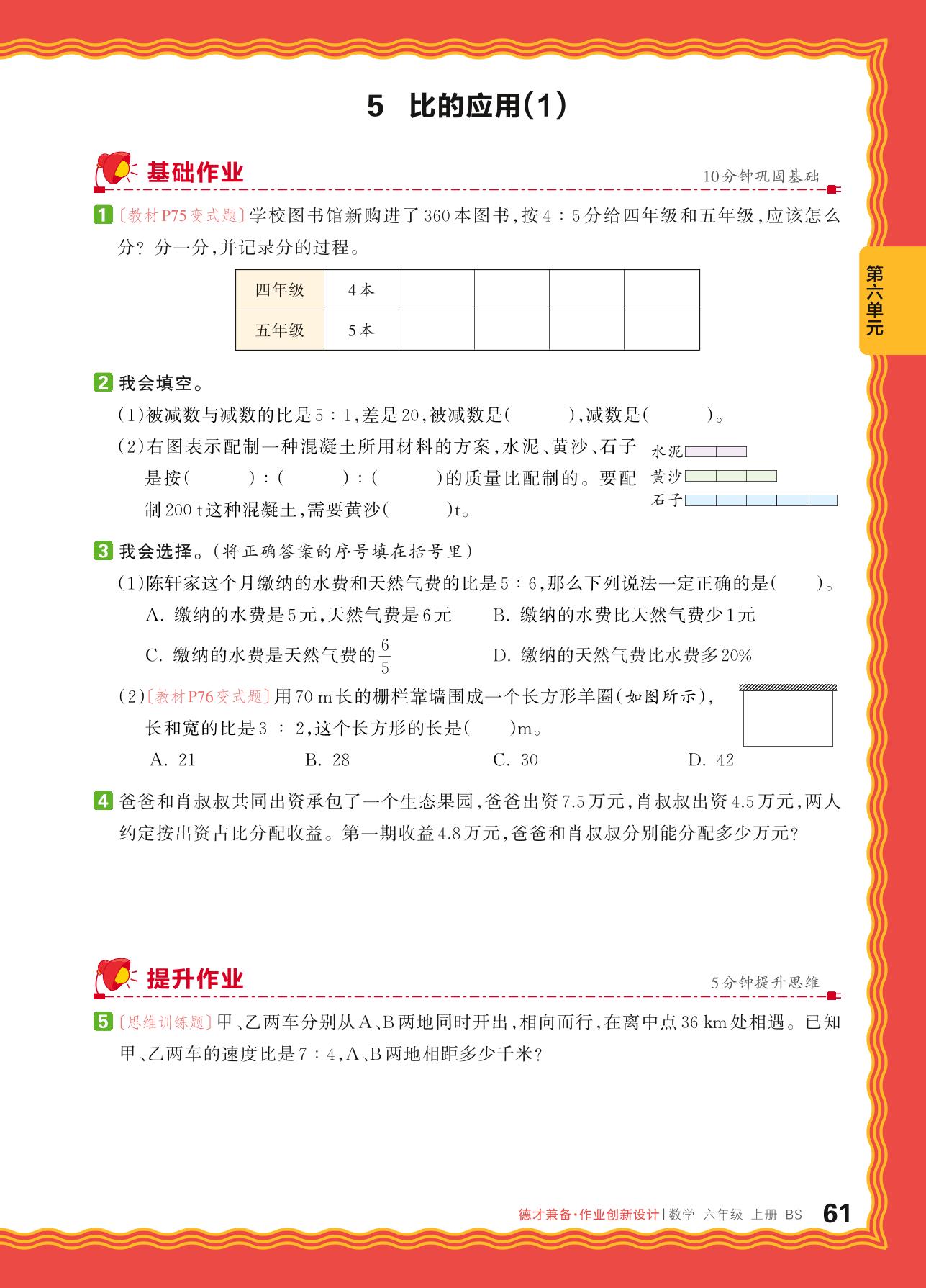 2024秋上册六年级数学北师版 第六单元 比的认识——5. 比的应用(1)