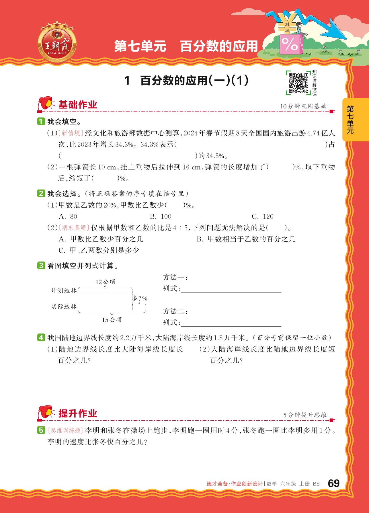 2024秋上册六年级数学北师版 第七单元 百分数的应用——1. 百分数的应用(一)(1)_R240819154431471