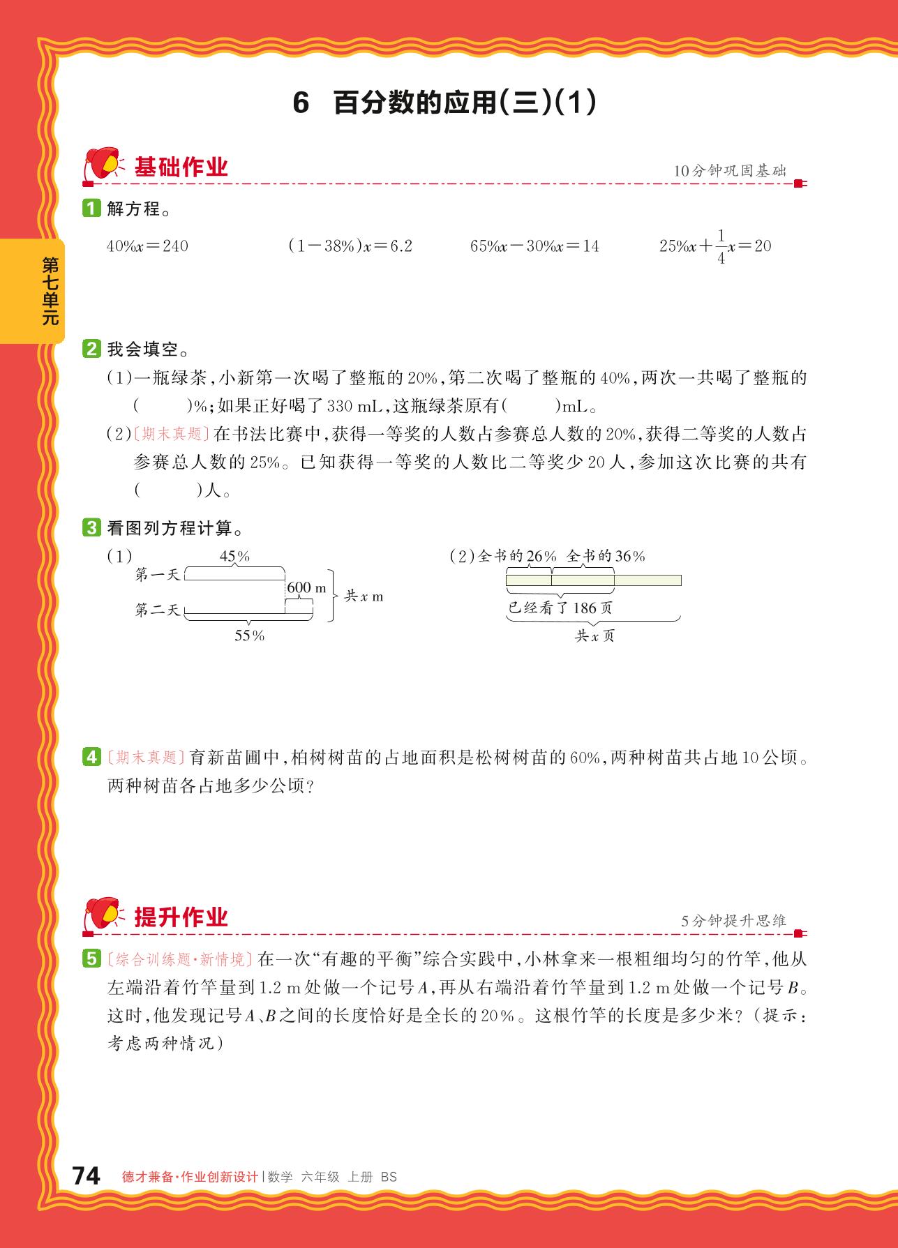 2024秋上册六年级数学北师版 第七单元 百分数的应用——6. 百分数的应用(三)(1)