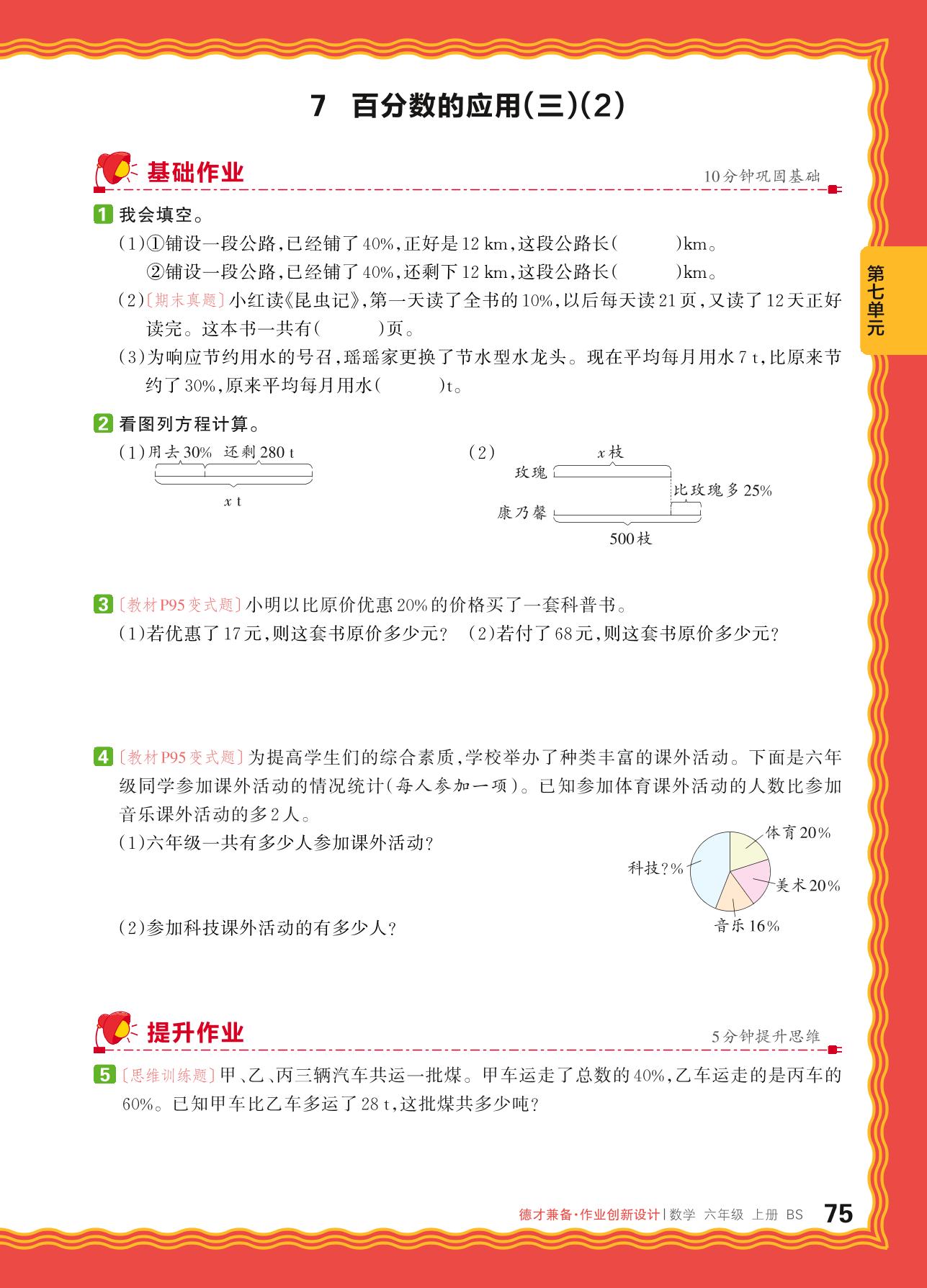 2024秋上册六年级数学北师版 第七单元 百分数的应用——7. 百分数的应用(三)(2)