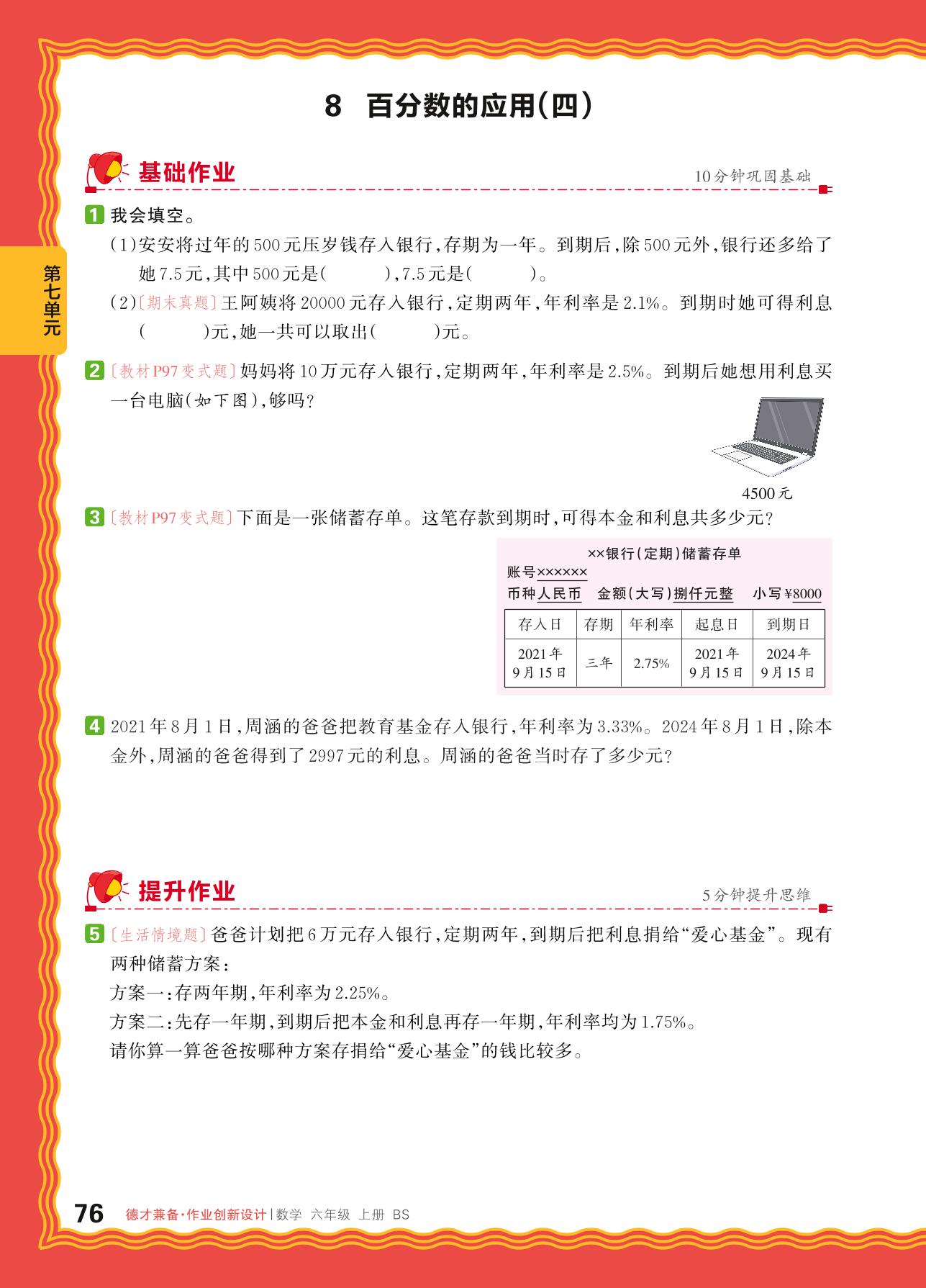 2024秋上册六年级数学北师版 第七单元 百分数的应用——8. 百分数的应用(四)