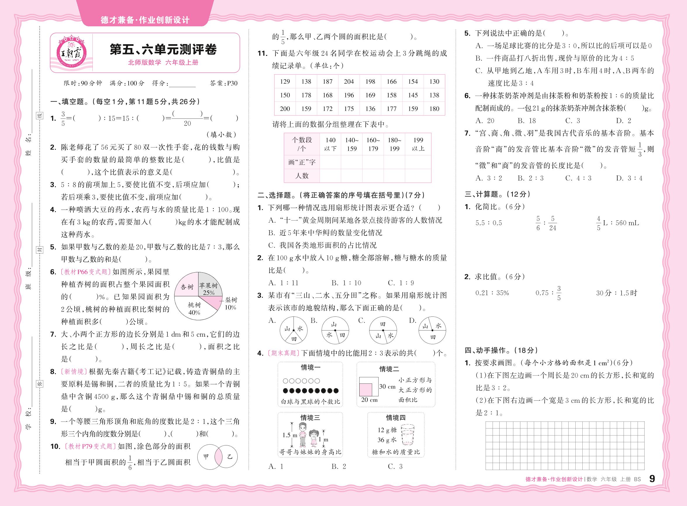 2024秋上册六年级数学北师版 第五、六单元测评卷