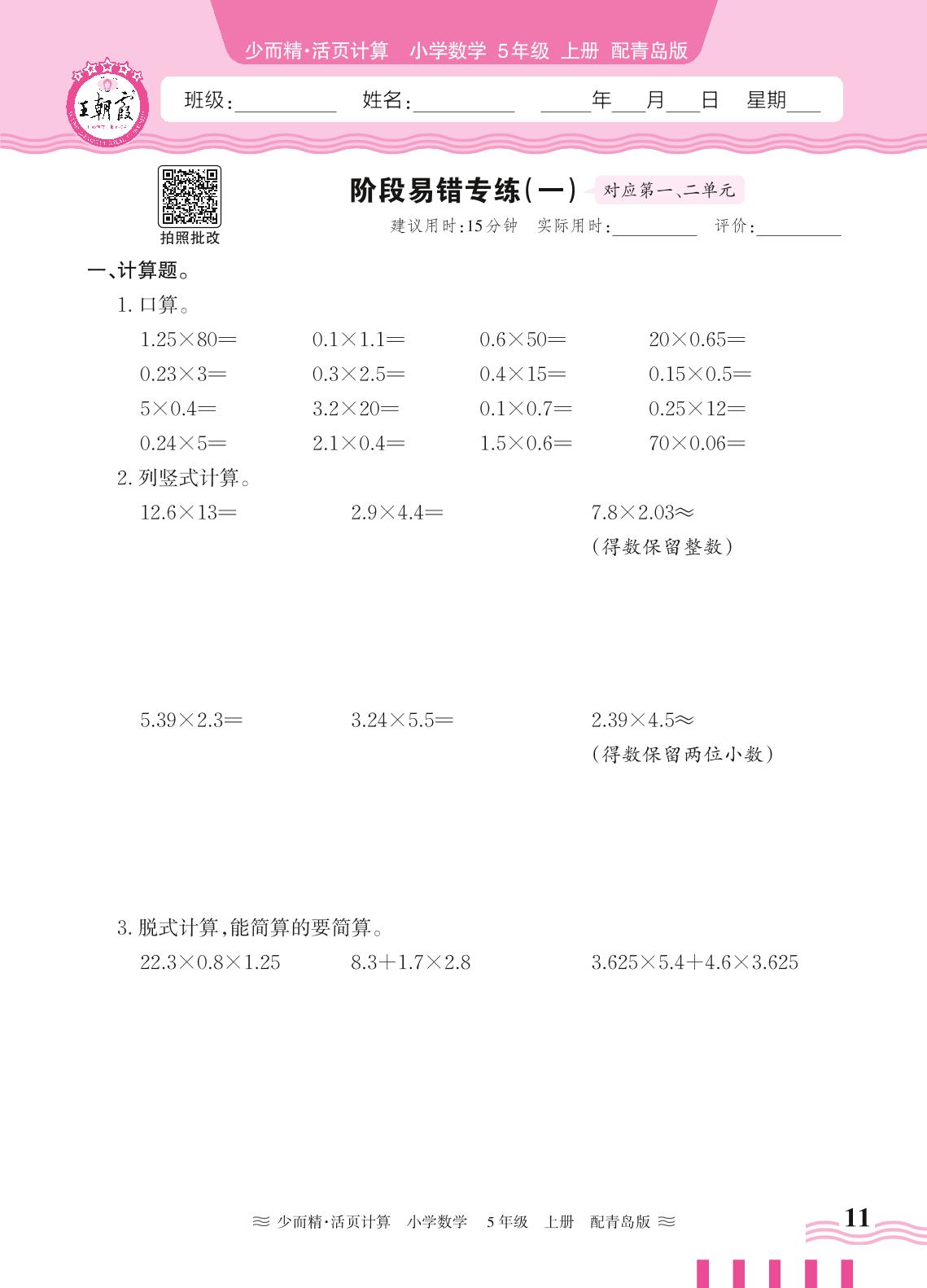 2024秋上册五年级数学青岛版 第一、二单元 阶段易错专练