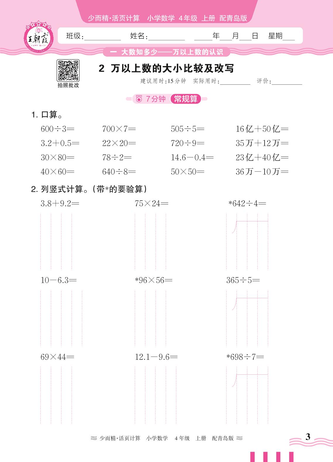 2024秋上册四年级数学青岛版 第一单元 大数知多少(万以上数的认识)——2. 万以上数的大小比较及改写