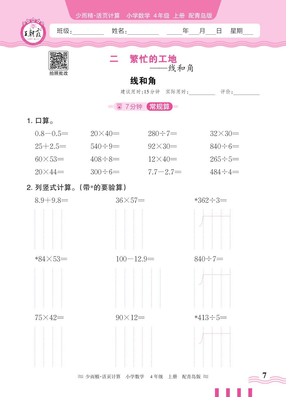 2024秋上册四年级数学青岛版 第二单元 繁忙的工地(线和角)——线和角