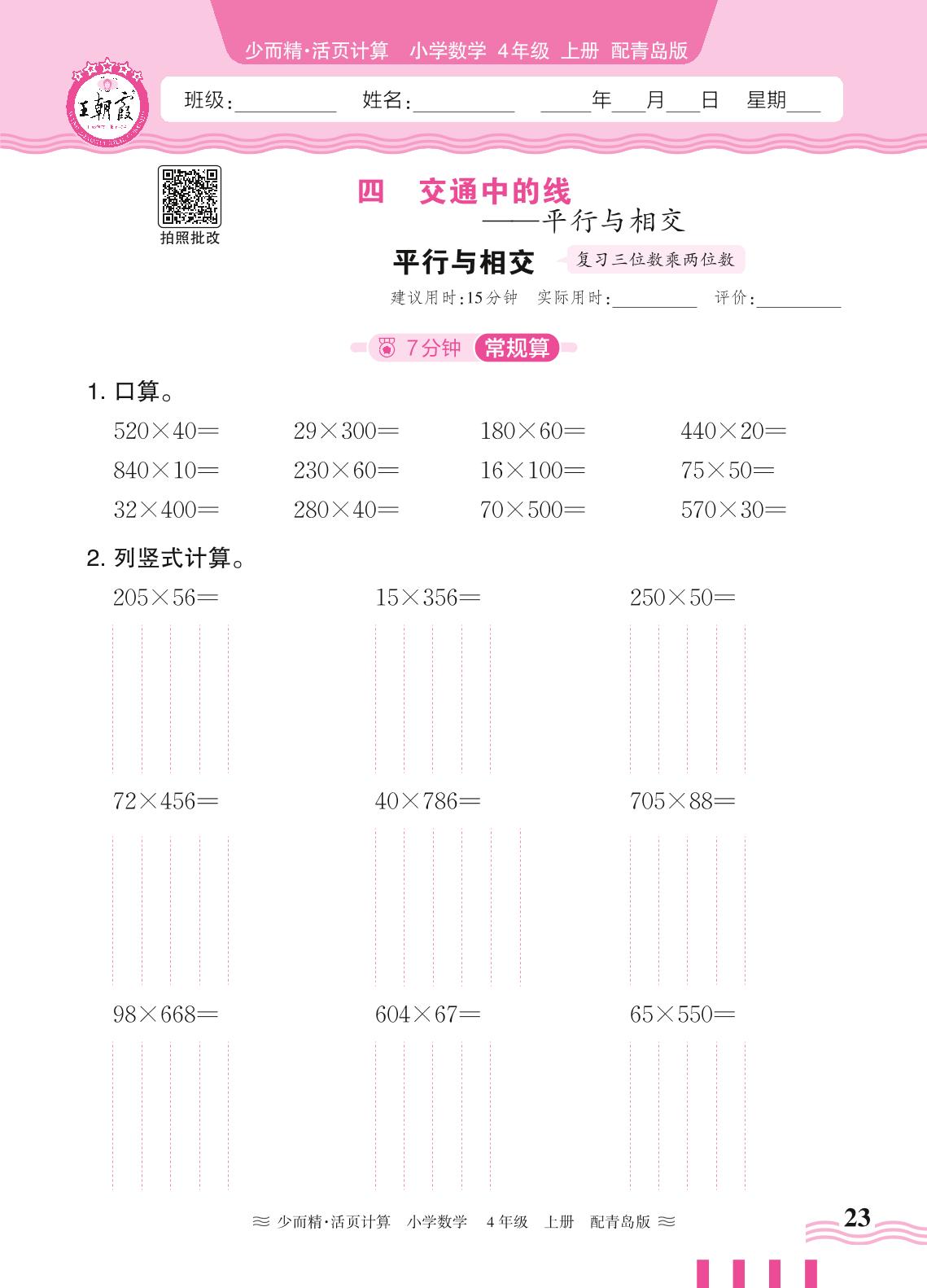 2024秋上册四年级数学青岛版 第四单元 交通中的线(平行与相交)——平行与相交