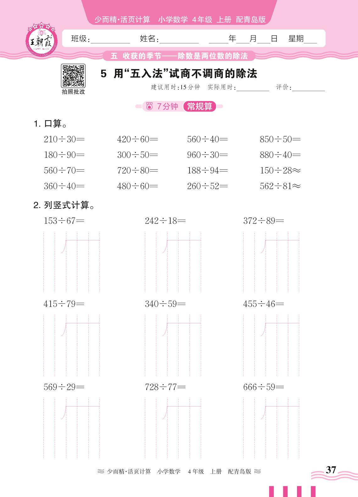 2024秋上册四年级数学青岛版 第五单元 收获的季节(除数是两位数的除法)——5. 用“五入法”试商不调商的除法