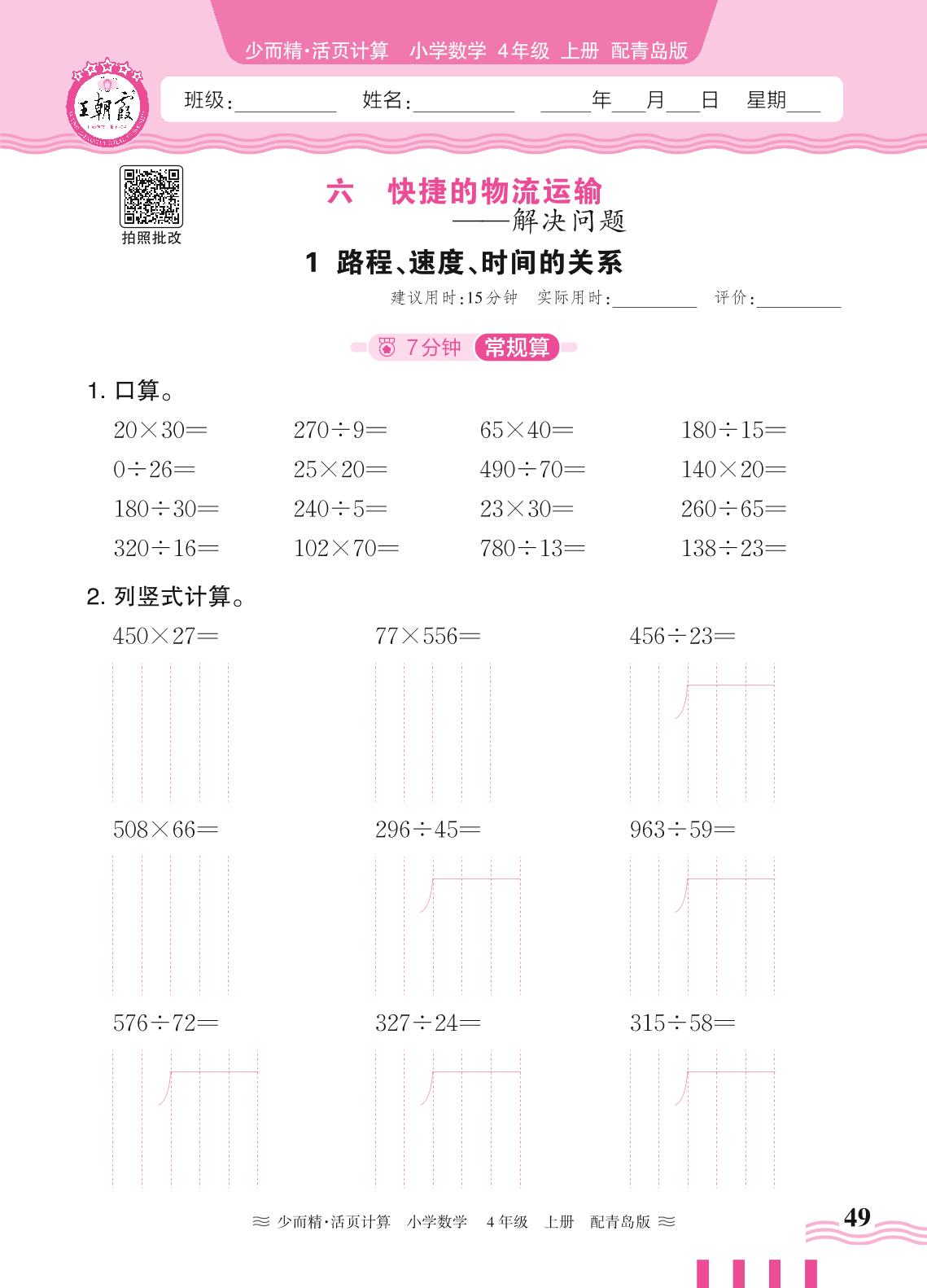 2024秋上册四年级数学青岛版 第六单元 快捷的物流运输(解决问题)——1. 路程、速度、时间的关系