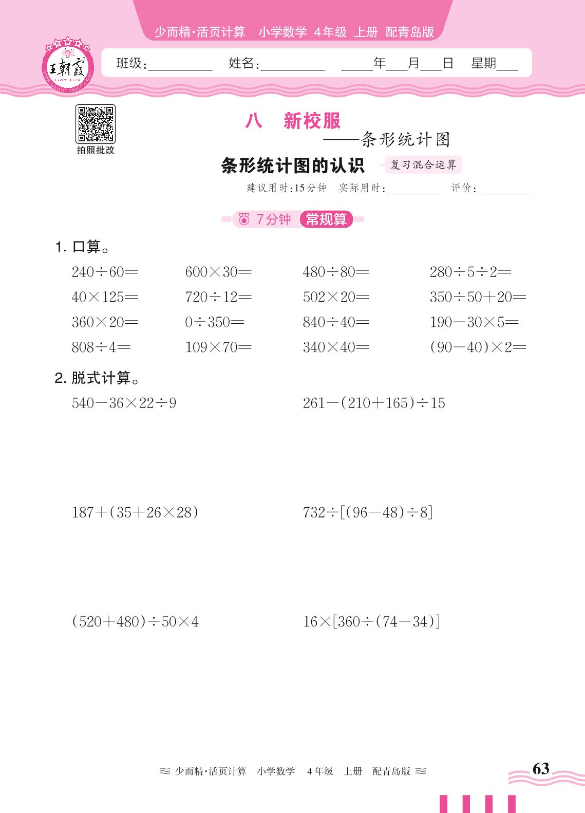 2024秋上册四年级数学青岛版 第八单元 新校服(条形统计图)——条形统计图的认识