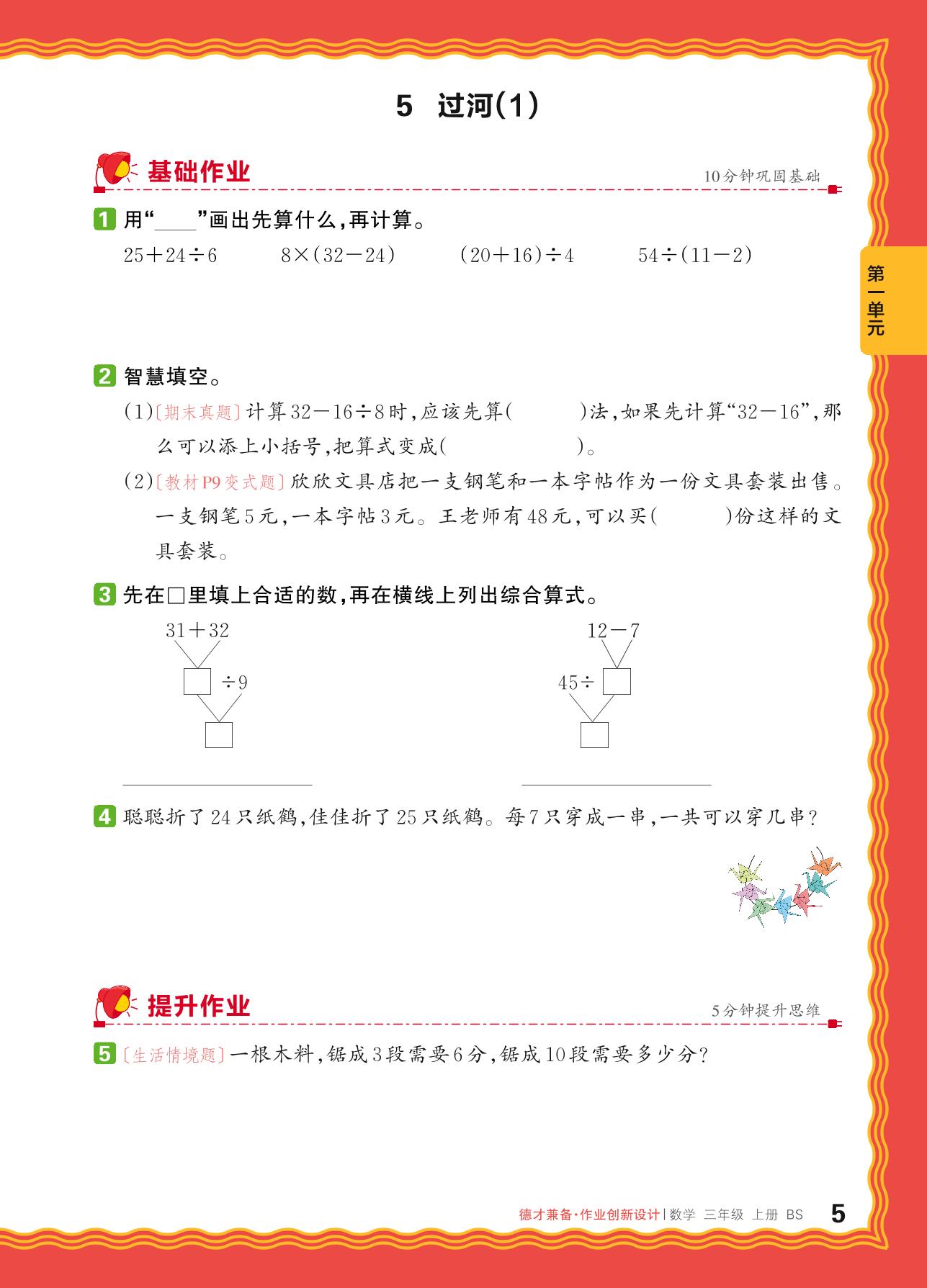 2024秋上册三年级数学北师版 第一单元 混合运算——5. 过河(1)_R240819161346189