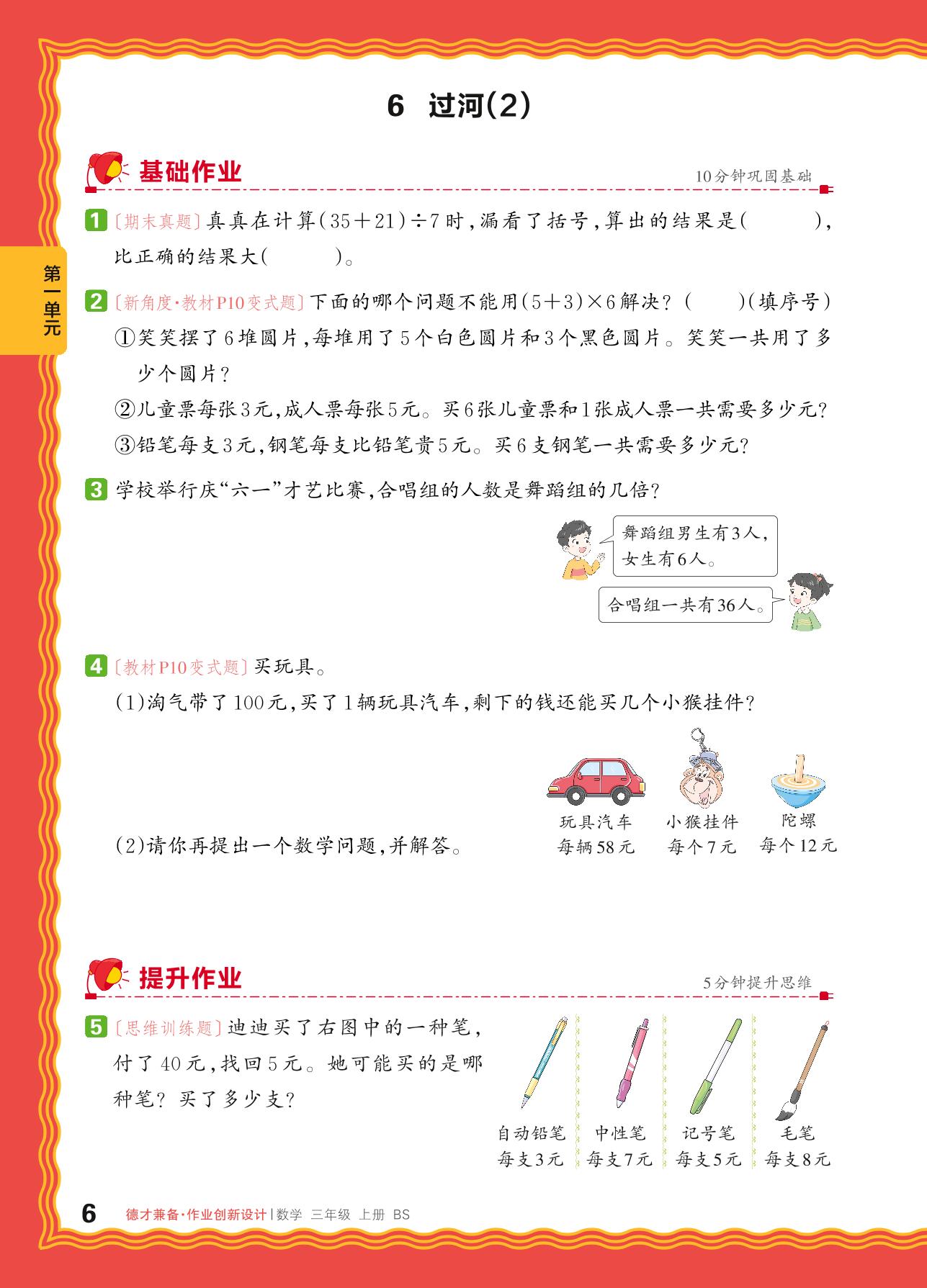 2024秋上册三年级数学北师版 第一单元 混合运算——6. 过河(2)_R240819161347631