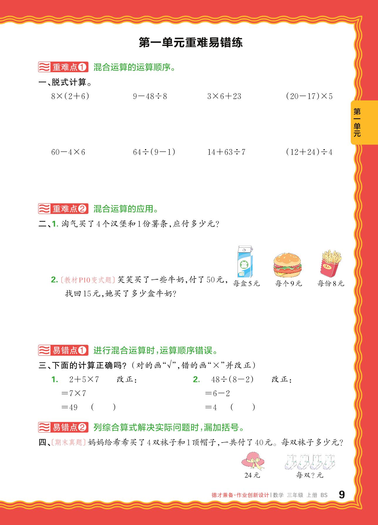 2024秋上册三年级数学北师版 第一单元重难易错练